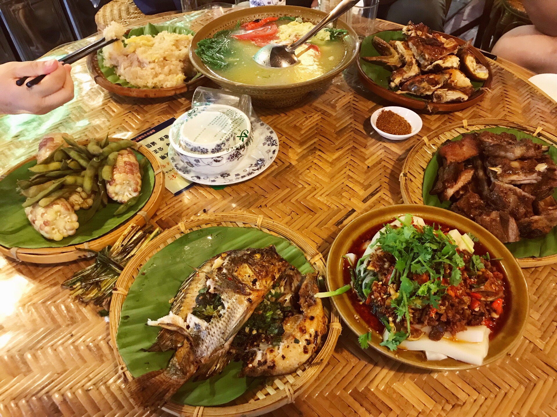 网友2019-07-19烤鸡和烤排骨都好吃,烤鱼那个香茅草有点带盐须味,不是太喜欢。菠萝饭还行,臭菜汤不好吃。玉米毛豆都不错烤鸡和烤排骨都好吃,烤鱼那个香茅草有点带盐须味,不是太喜欢。菠萝饭还行,臭菜汤不好吃。玉米毛豆都不错。。。。。。。。。。