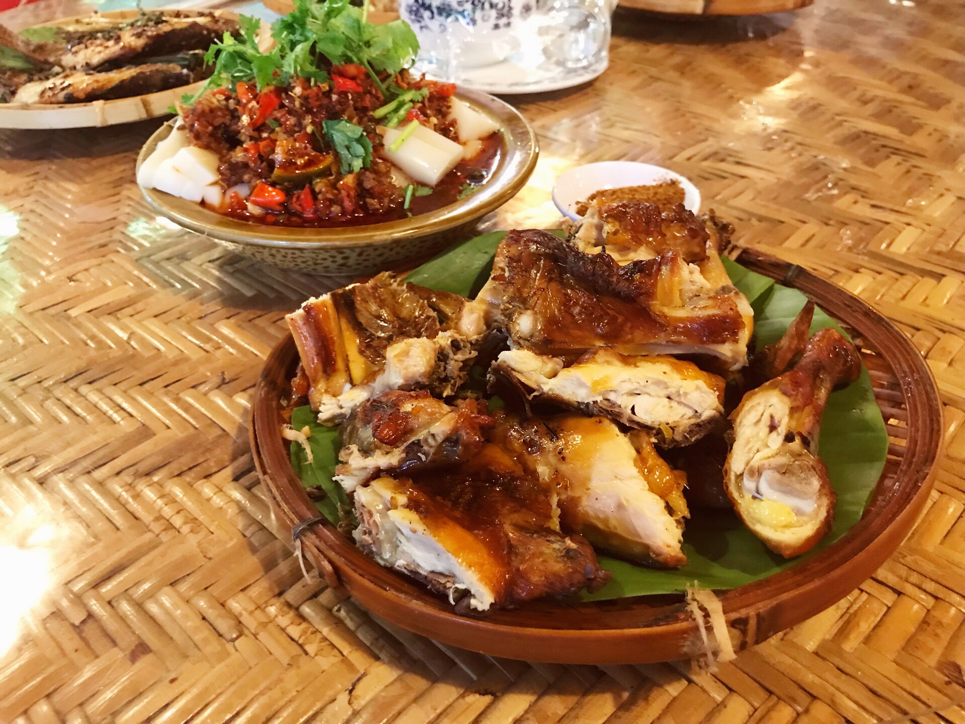 烤鸡和烤排骨都好吃,烤鱼那个香茅草有点带盐须味,不是太喜欢。菠萝饭还行,臭菜汤不好吃。玉米毛豆都不错烤鸡和烤排骨都好吃,烤鱼那个香茅草有点带盐须味,不是太喜欢。菠萝饭还行,臭菜汤不好吃。玉米毛豆都不错。。。。。。。。。。