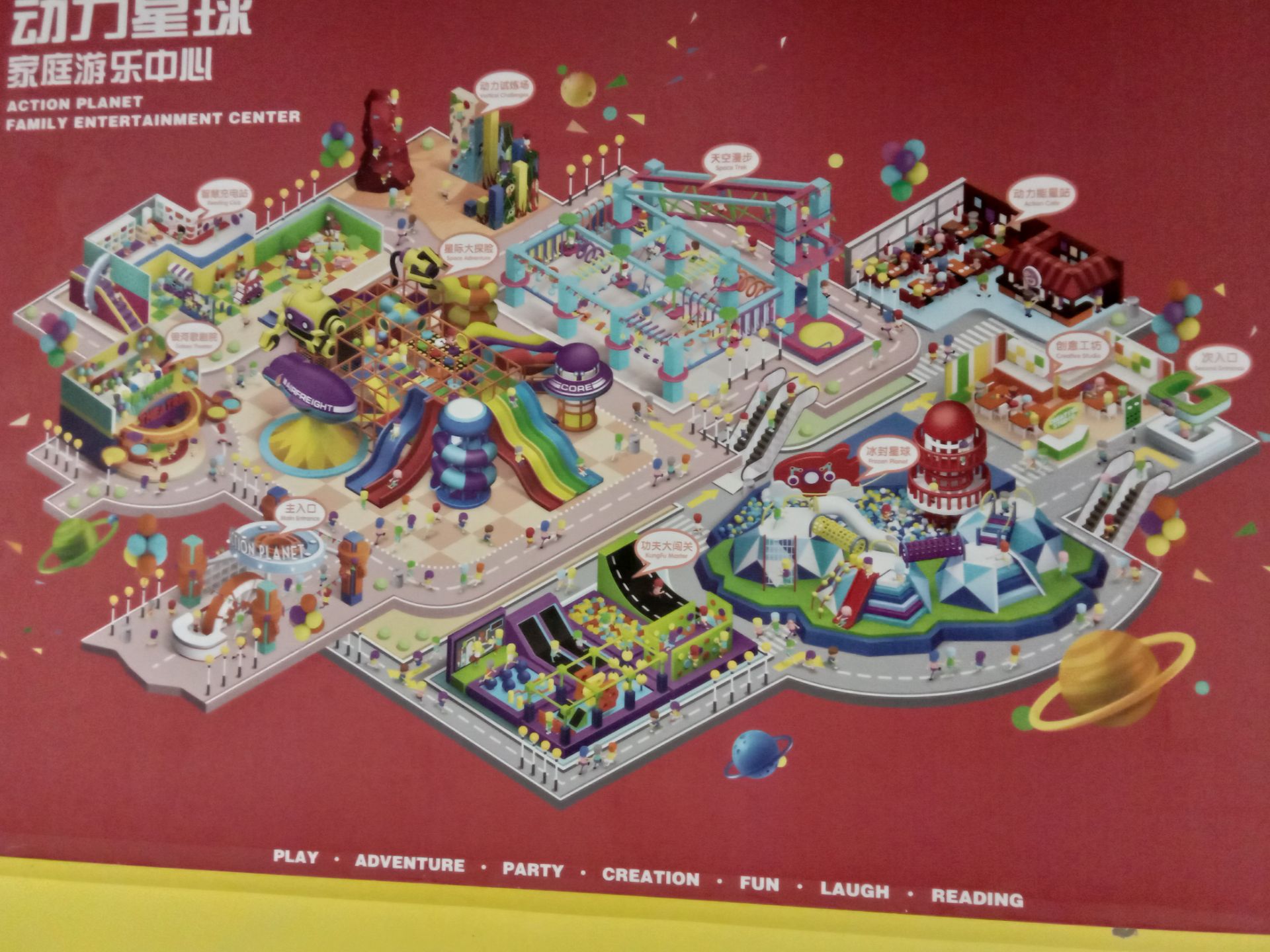 这里是一个购物、亲子、娱乐、美食的好去处,二层购物,三层儿童娱乐,四层美食,地停车场是免费的,...这里是一个购物、亲子、娱乐、美食的好去处,二层购物,三层儿童娱乐,四层美食,地停车场是免费的,三层的动力星球适合2-10岁的孩子玩儿,凭手环可以随便进出,四层有各种不同口味的美食。