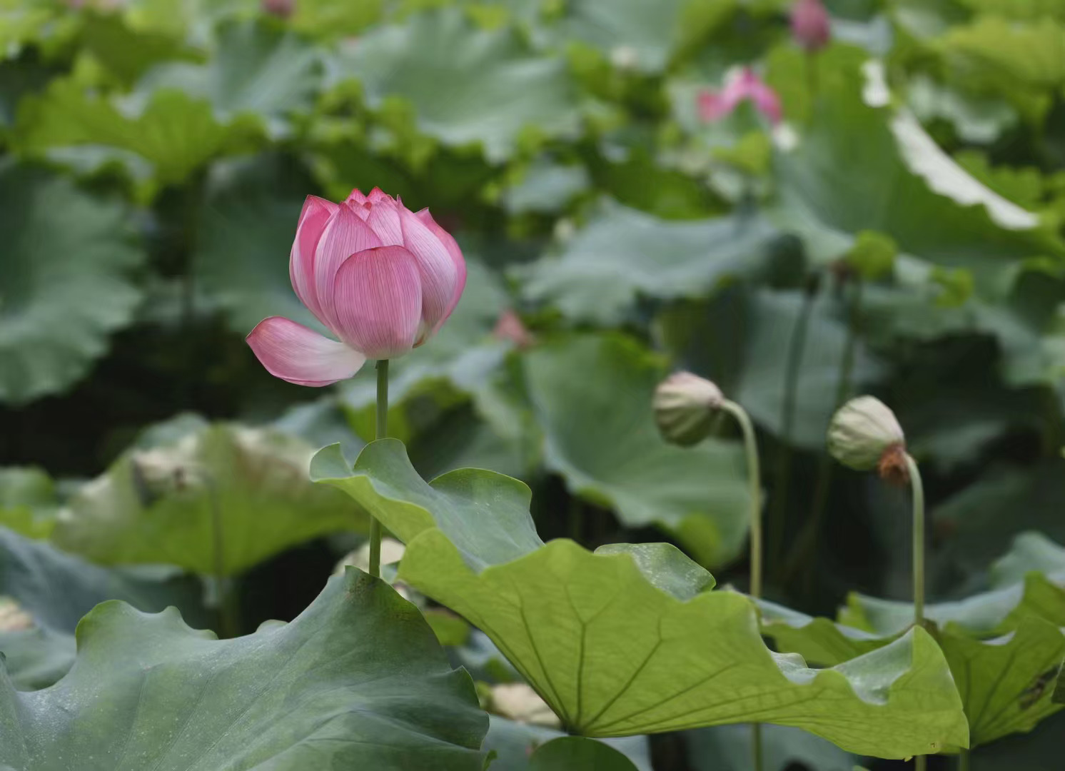 大片的荷花让人流连忘返,树林里叽叽喳喳的知了声此起彼伏,仿佛回到了儿时……