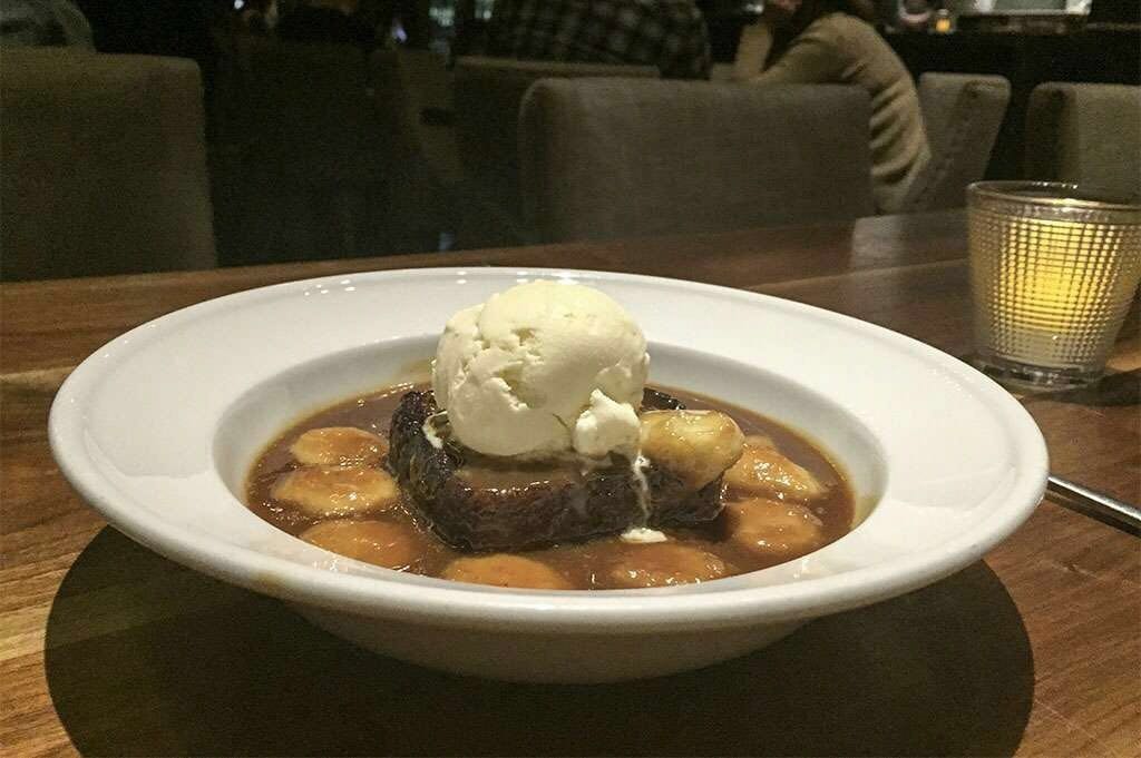 食物很好,服务很好,位置很好。停车可能很难找到,这取决于你一天中什么时候去。我们有6个人和3个人点了开胃菜、主菜和甜点。我们还点了一些色拉。我们分享了所有的东西,这样我们就能尝到所有的味道。我们有猪排、鲈鱼和羊排!!非常好!!甜品烤架香蕉面包是为了死!!强烈推荐!享受