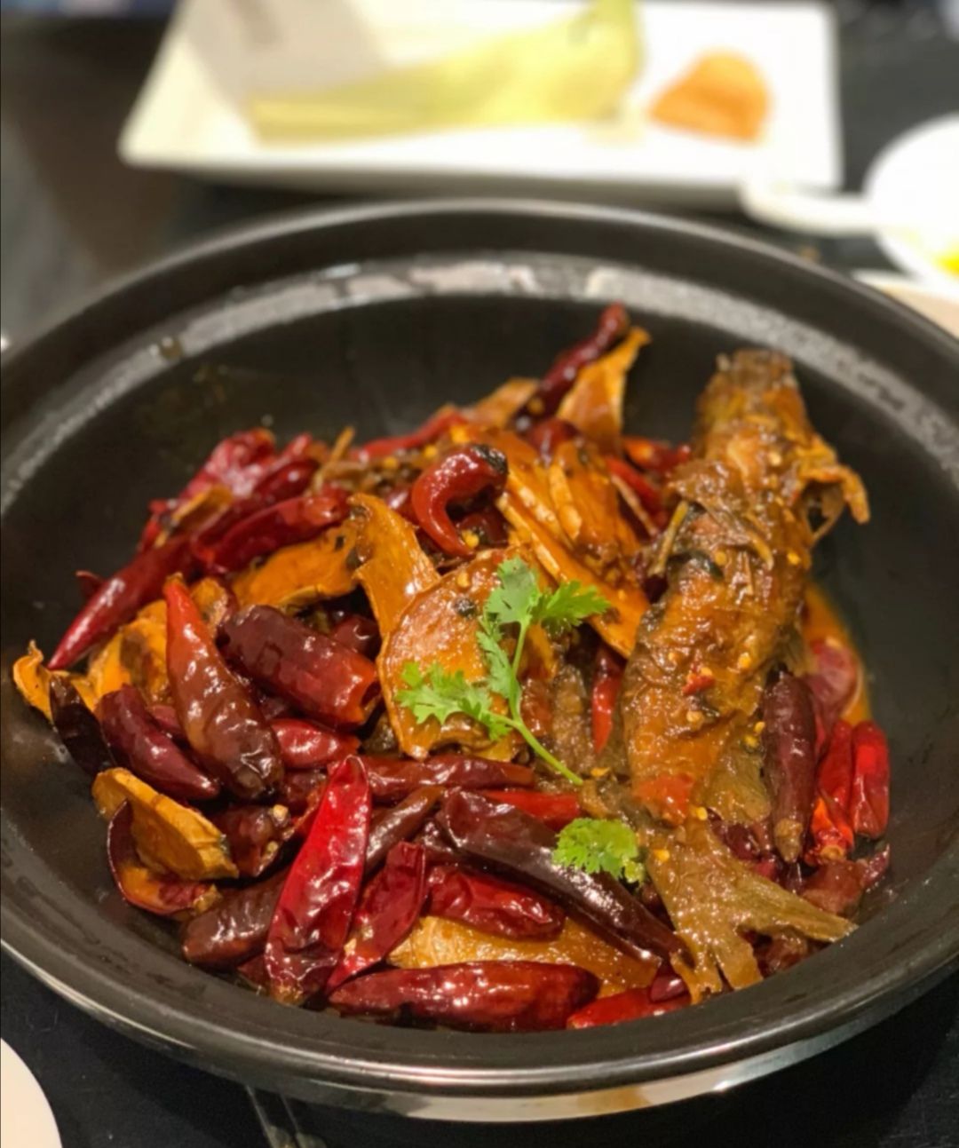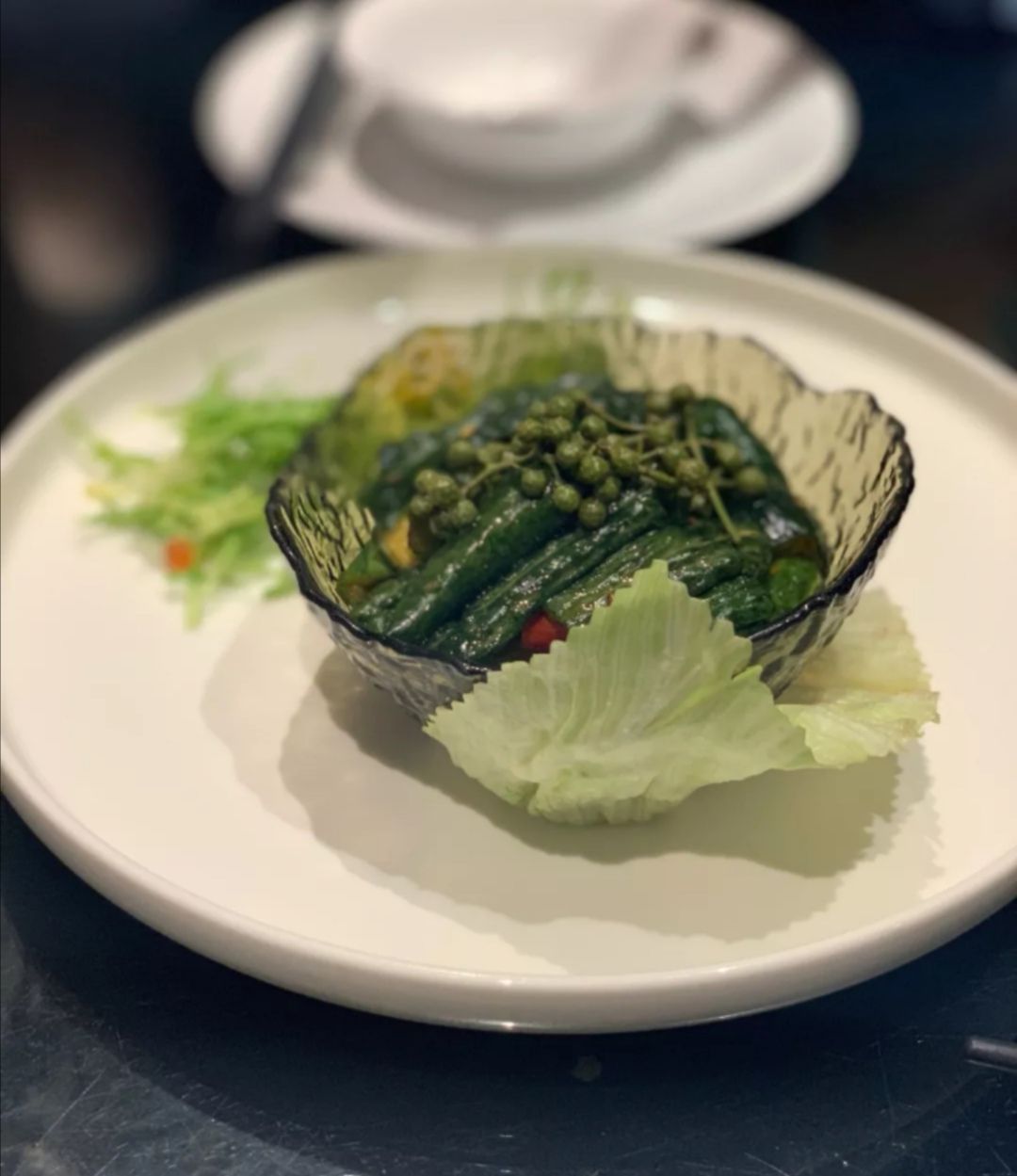 姜辣黄骨鱼,做的时间很久,但是还是蛮值得的,鱼炸过定型的,配上大量的辣椒和生姜,味道独特。 泰式咖喱虾,虾挺大只的,咖喱味浓郁,很不错。 经典汉味主题拼盘,挺迷你的,每样都是一口,很有特色。 橄榄菜炒四季豆,挺下饭的,很好。
