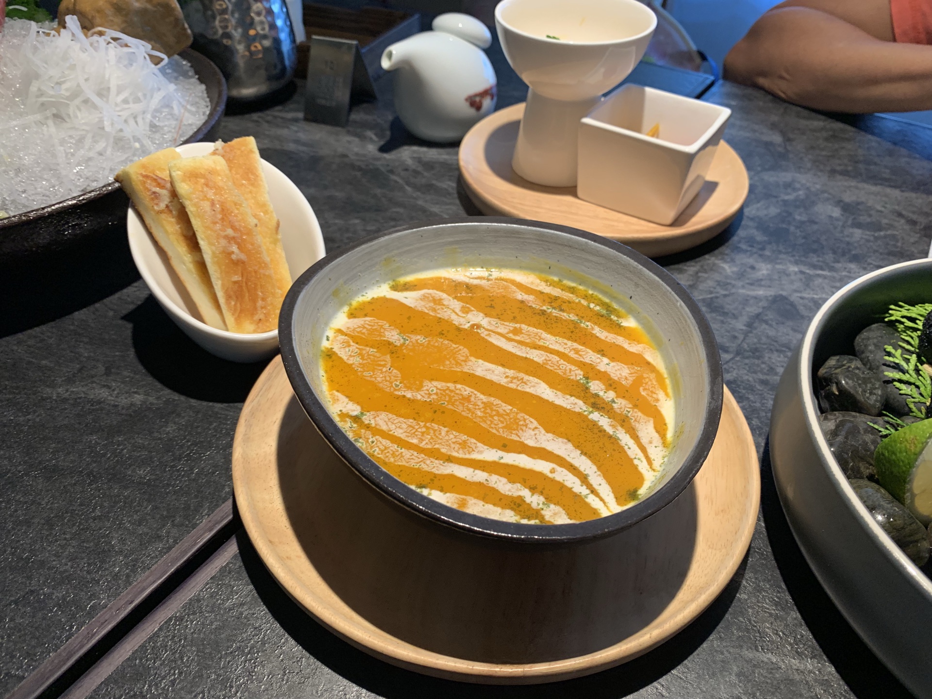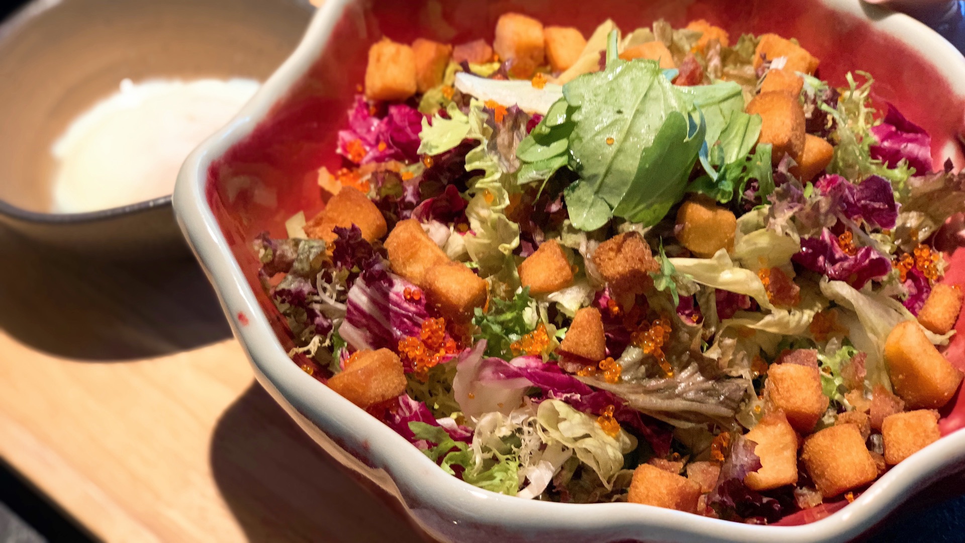 森空和食位于中华城南区五楼电影院旁,门店装修简约大气。开胃小菜摆盘精子,腌制过的哈密瓜,酸甜开胃。【黑松露啤酒炸鸡】炸得酥脆,肉质细嫩多汁。【泡菜海鲜乌冬】料足量多,汤底口味比较像味增汤,泡菜味比较淡,爱吃乌冬面的一定会喜欢。【海胆水饺】海胆鲜味蘸着辣椒油吃很美味。【低温慢煮牛肉】腌制过的生牛肉搭配生菜及蘸酱,清爽丰富。【南瓜汤】和平时喝的不大一样。味道香浓,搭配面包更是惊艳。【帕尔玛凯撒沙拉】服务员耐心制作。温泉蛋及奶酪芝士搅拌在新鲜蔬菜里开胃营养。服务员各个都超nice的!值得推荐的一家日料店!