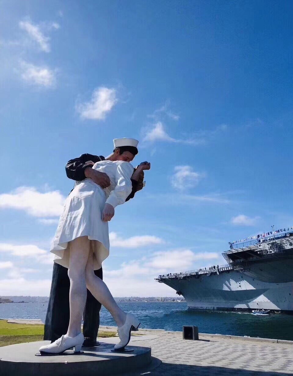 胜利之吻是纪念二战胜利的经典雕像,它坐落在美丽的圣地亚哥港,在中途号航母博物馆旁边,是圣地亚哥...胜利之吻是纪念二战胜利的经典雕像,它坐落在美丽的圣地亚哥港,在中途号航母博物馆旁边,是圣地亚哥的著名景点和标志之一,每次去都忍不住和它来个合影。