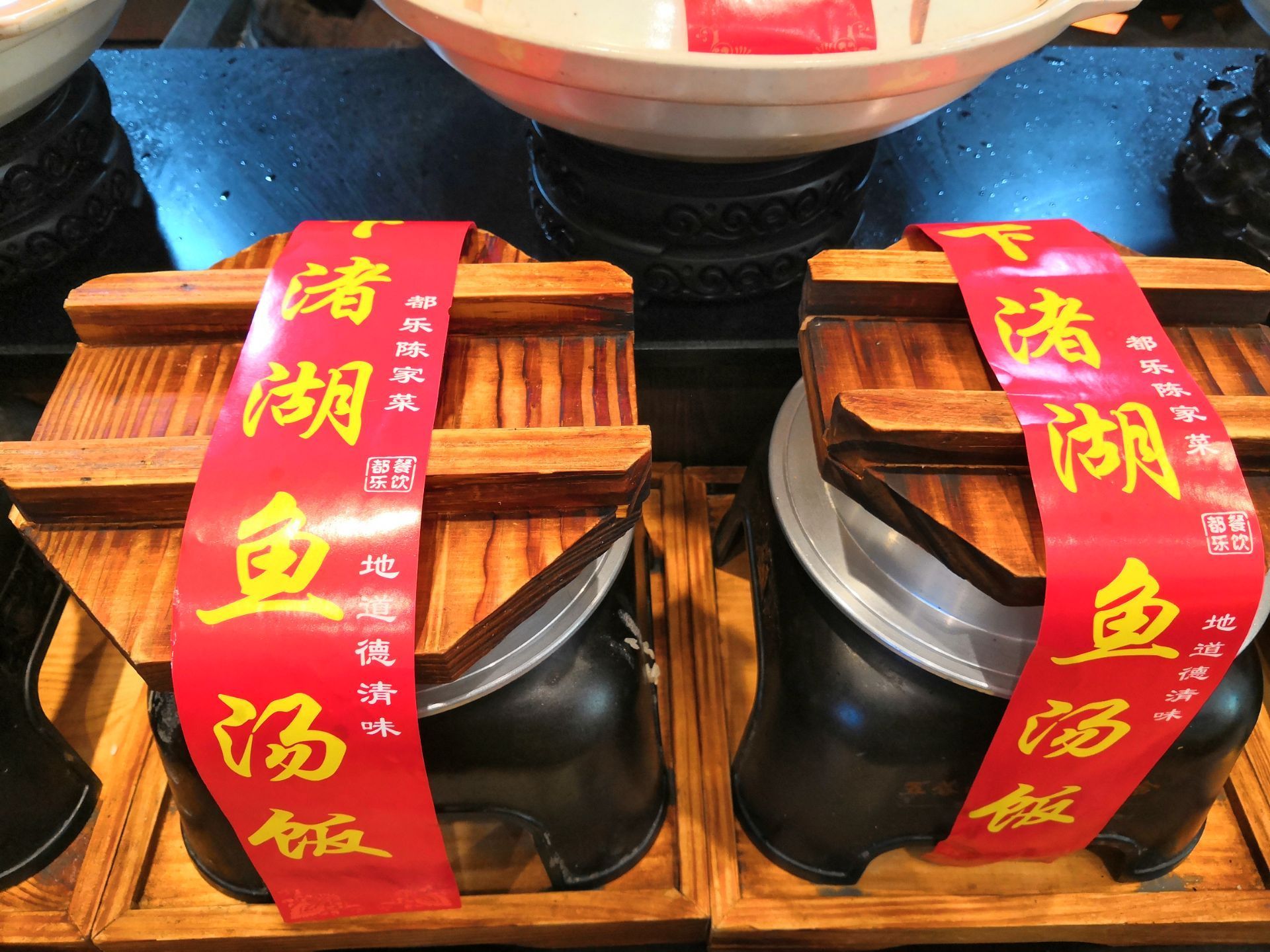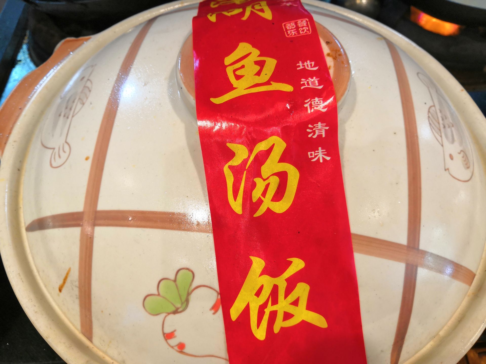 和朋友来德清玩,中午搜附近搜到这家店,招牌鱼汤饭挺吸引人的,就在这边吃了。明档点菜,一目了然,鱼汤饭好有仪式感啊,都是封着封条上桌揭的,特吉利。鱼头我是最爱了,分量也是真的足,吃完鱼头再把饭倒进汤里,超级鲜美。我们人不多,一个鱼汤饭加几个蔬菜就足够了,喜欢这个芋头,很酥嫩软糯入味