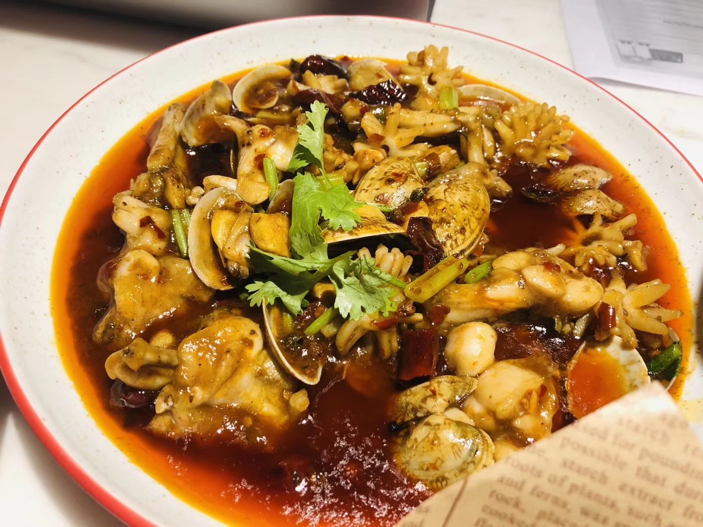这家餐厅名字翻译成中文倒是挺有趣的,叫“草堂”,地理位置极好,就在纽约的时代广场里面。是一家算的上挺高大上的中餐厅,主打的则是川菜。这家的串串是特色,是冷锅串串,特别麻辣鲜香。但是吃完嘴巴不会特别干渴。吃完后,再搭配一份芒果西米露,简直是完美。