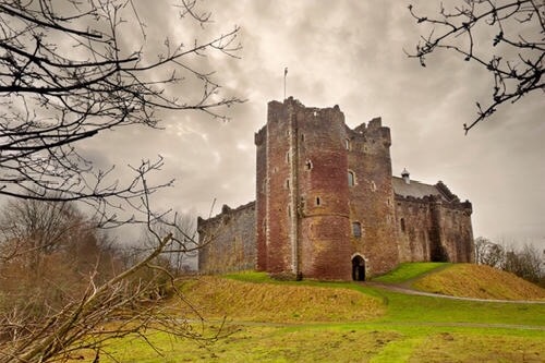 美剧迷的必打卡之地!!!当天游览的第一个站就是杜恩城堡 (Doune Castle)。 这座迷人的14世纪城堡在电影和电视行业的地位颇高,所以应该十分容易辨认。杜恩城堡曾出现在《巨蟒与圣杯》 (Monty Python and the Holy Grail) 的拍摄中。此外,这座城堡还用于在《权力的游戏》 (Game of Thrones) 第一季中代表临冬城 (Winterfell)的一部分——临冬城,史塔克家族祖传的城堡,作为北境的首府和权力的中心,见证了北境之王史塔克家族世世代代的荣耀和纷争。同时,这座城堡还是《古战场传奇》 (Outlander) 中虚构的理士城堡 (Castle Leoch)。