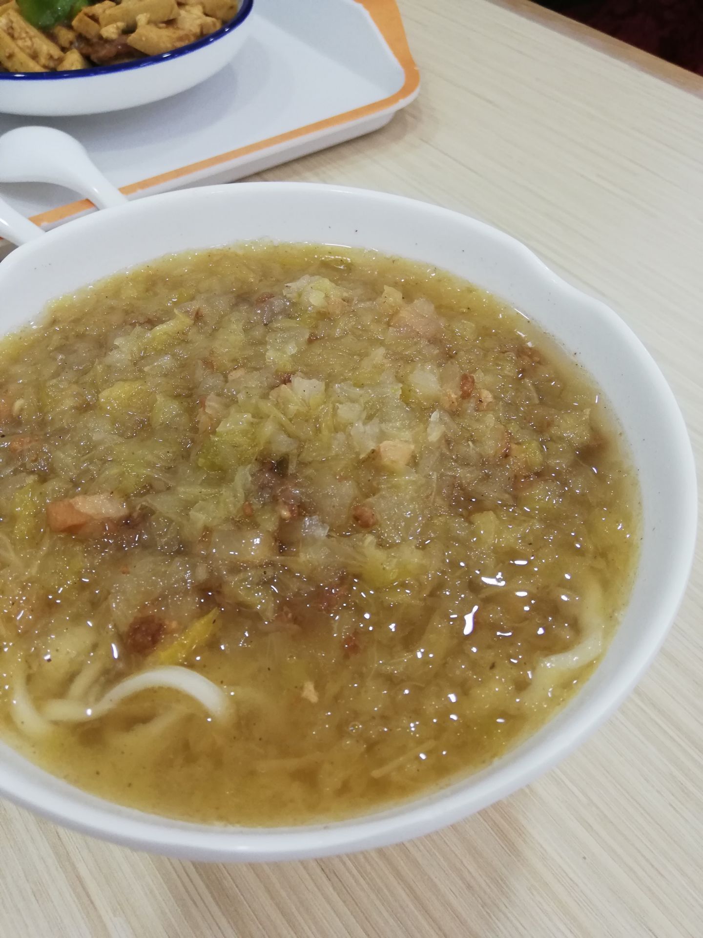 这家装修后就升级为快餐店而不是主打手擀面了,所以手擀面味道差了好多,两种卤都不好吃,清汤寡水的,下次不能点了~快餐是自选的,这种直接的形式我还是喜欢的,粥饼还有菜品都很多,价格还可以吧,比一般饭店还是小贵一点,譬如一般饭店白米饭是2元吧,这里是3元~