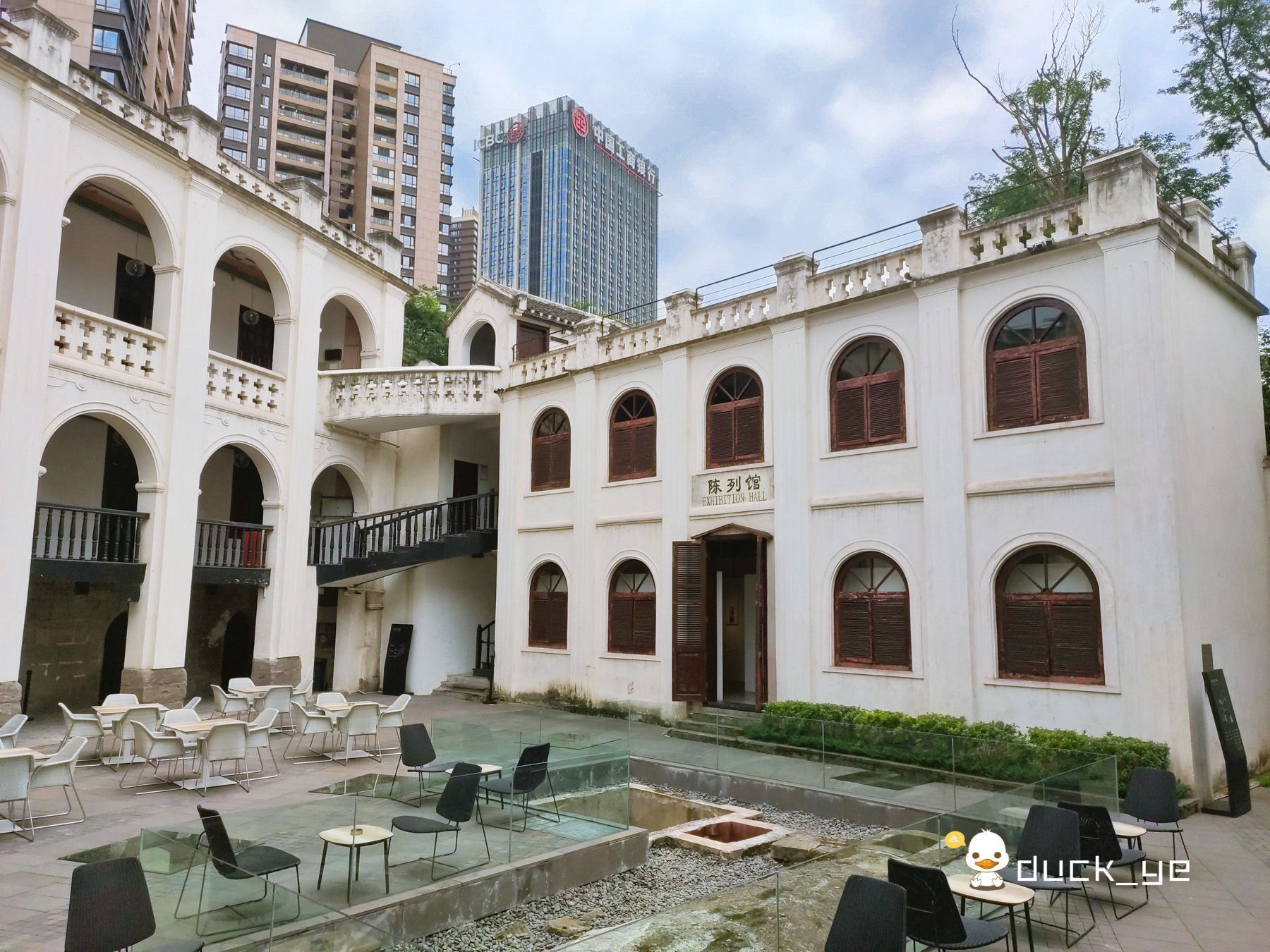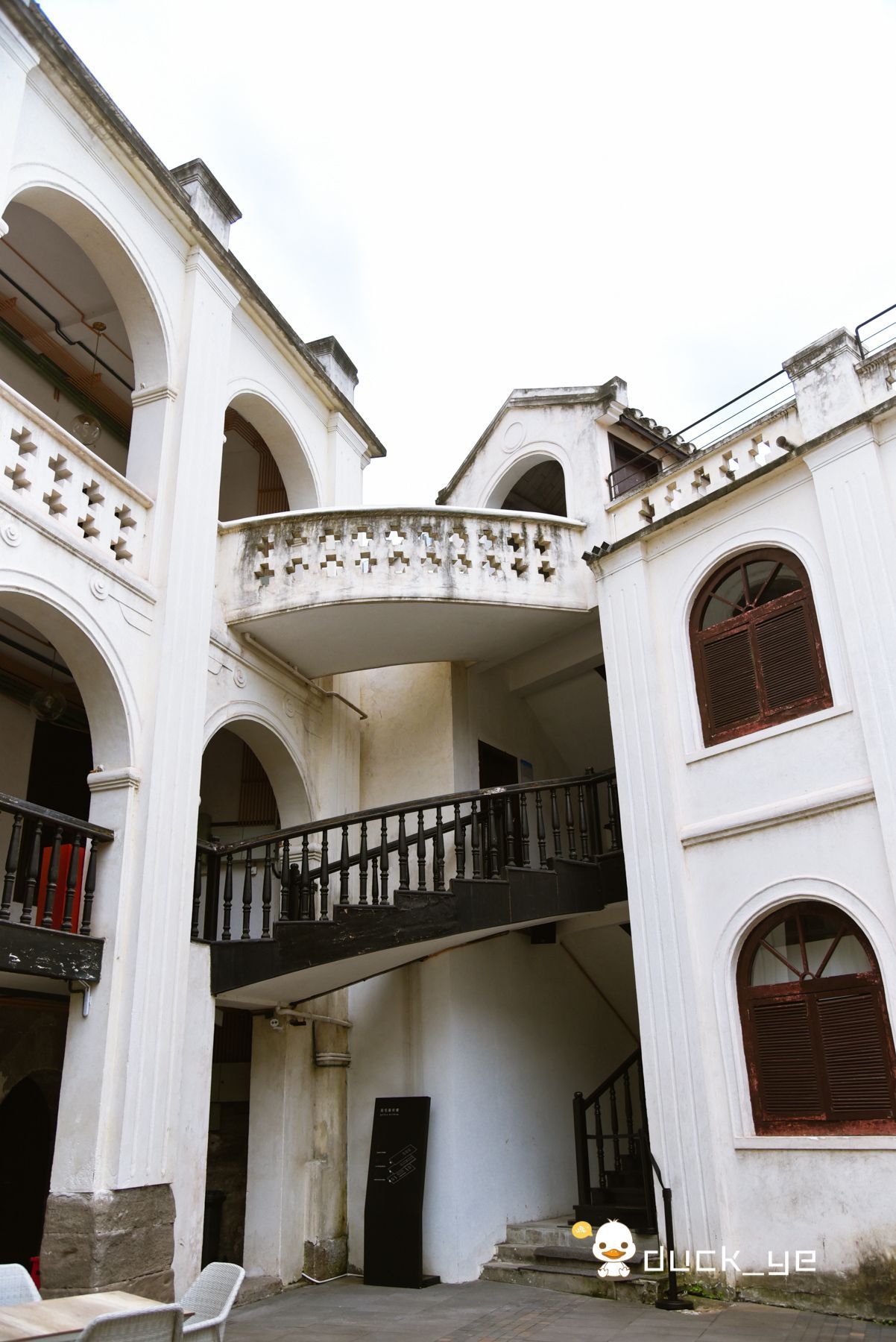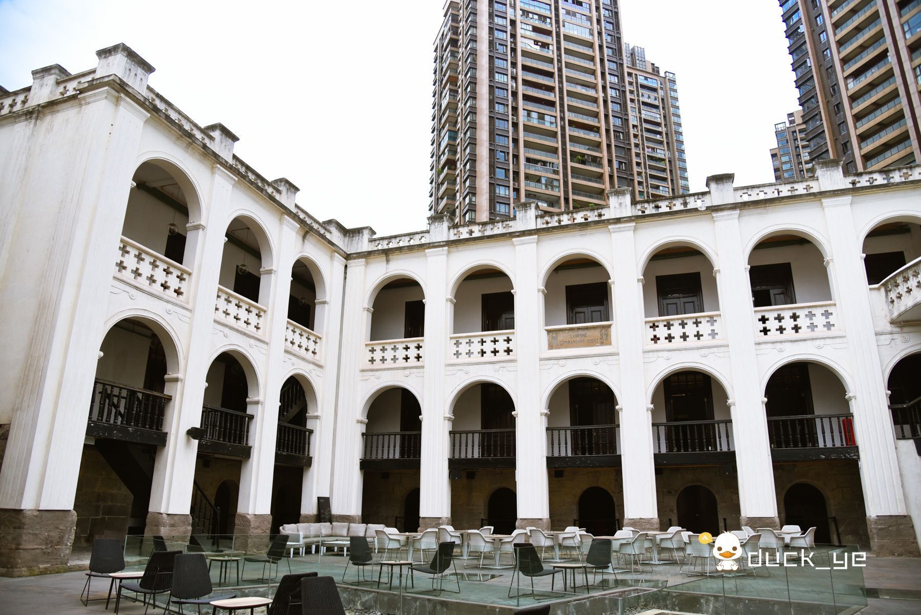 隐藏在弹子石老街边上的还有一个法国水师旧址,这也是旅游巴士下车时司机推荐我们一定要去看一看。爸妈觉得走累了,便安顿了他们在弹子石老街休息,我自己一人去了这个法国水师兵营旧址,不曾想,这大概是这趟重庆之行最大的惊喜。 它是模仿百年古堡水兵营、欧洲中世纪城堡式为主体的建筑风格,建筑面积1600平方米,是一栋带内庭和回廊的合院室建筑。建筑风格上可以说是中西合璧,西式的拱形柱廊,配以中国传统建筑、雕刻艺术,既有历史的厚重又不失艺术的历久弥新。 百年的历史在这里流淌,一走进里面便觉得时间不自觉的慢下来。在这栋回廊式的建筑中还播放着复古的音乐,就让人更有感觉。陈列馆、酒窖、书店,三者在这里融合,坐在庭院中,细细感受这个百岁老别墅的点点滴滴,不禁令人浮想翩翩。 这里也是一个很好的ins风拍照点,既有复古情怀又有带着点文艺小清新。