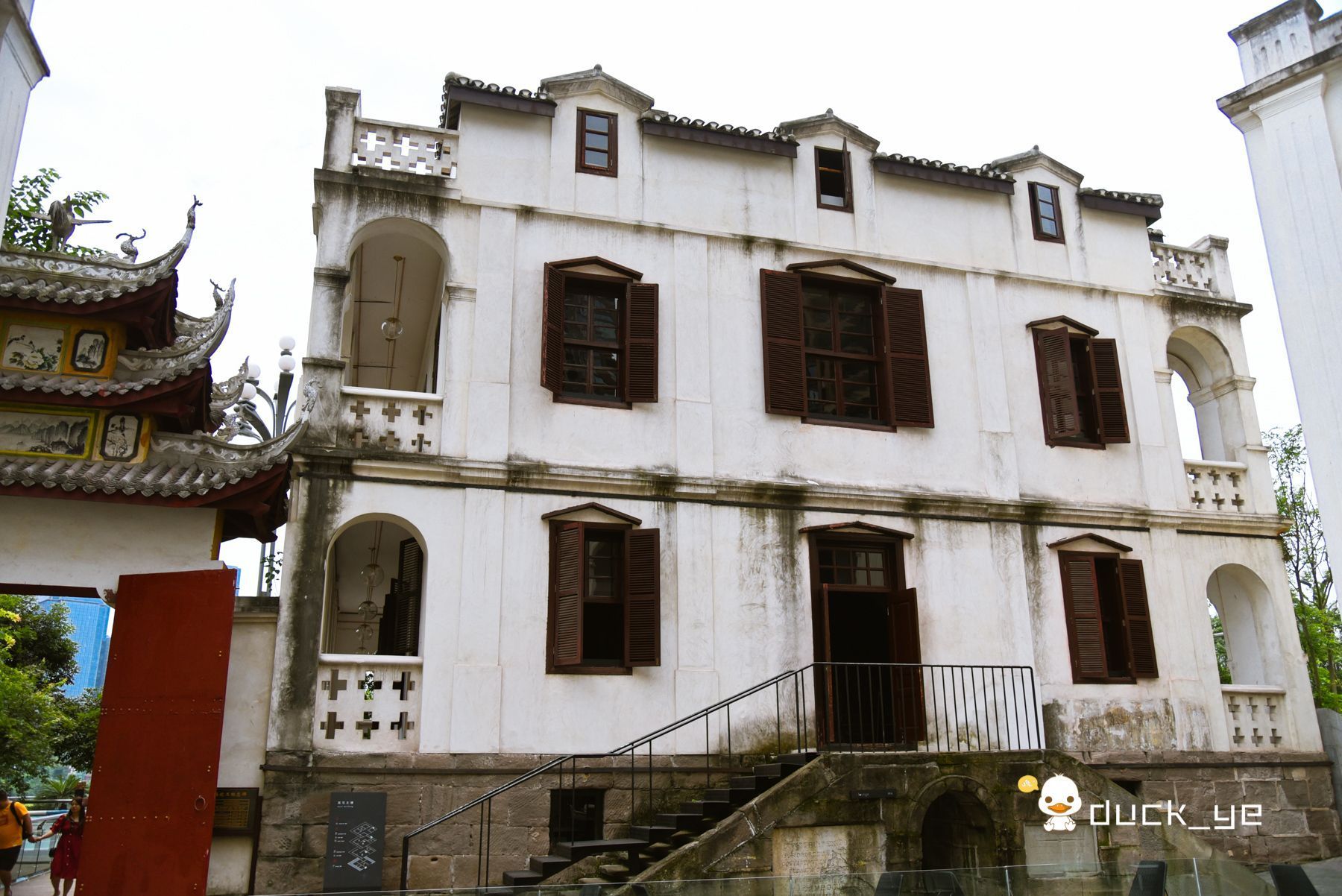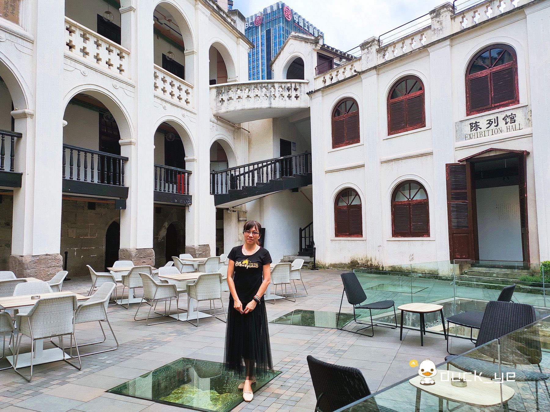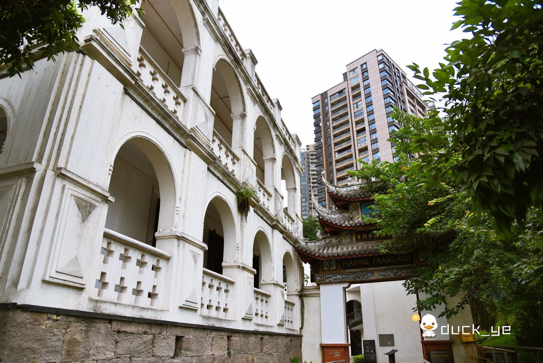 隐藏在弹子石老街边上的还有一个法国水师旧址,这也是旅游巴士下车时司机推荐我们一定要去看一看。爸妈觉得走累了,便安顿了他们在弹子石老街休息,我自己一人去了这个法国水师兵营旧址,不曾想,这大概是这趟重庆之行最大的惊喜。 它是模仿百年古堡水兵营、欧洲中世纪城堡式为主体的建筑风格,建筑面积1600平方米,是一栋带内庭和回廊的合院室建筑。建筑风格上可以说是中西合璧,西式的拱形柱廊,配以中国传统建筑、雕刻艺术,既有历史的厚重又不失艺术的历久弥新。 百年的历史在这里流淌,一走进里面便觉得时间不自觉的慢下来。在这栋回廊式的建筑中还播放着复古的音乐,就让人更有感觉。陈列馆、酒窖、书店,三者在这里融合,坐在庭院中,细细感受这个百岁老别墅的点点滴滴,不禁令人浮想翩翩。 这里也是一个很好的ins风拍照点,既有复古情怀又有带着点文艺小清新。
