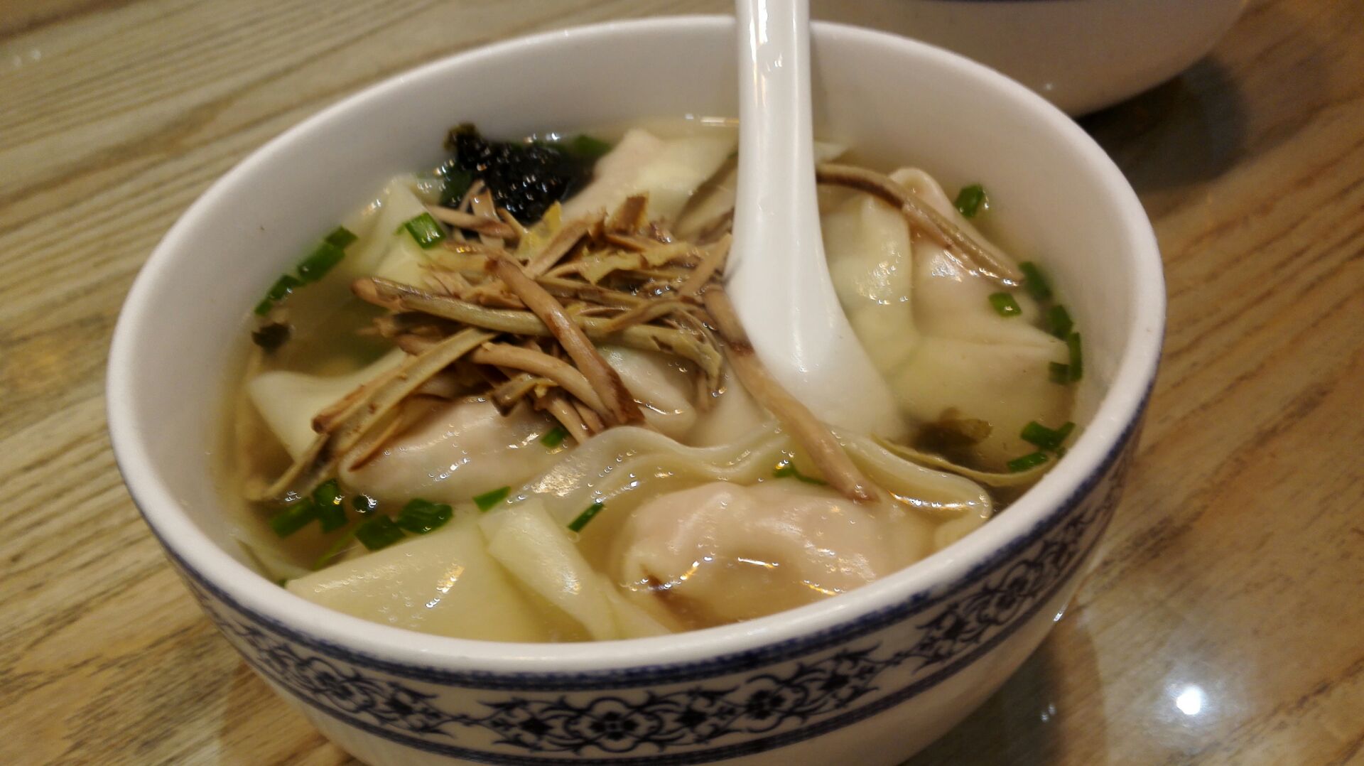 这里的小笼馒头是无锡最好的,皮特别薄,汤汁也足,还有免费姜丝开业放在香醋里解腻,开洋馄饨也是中...