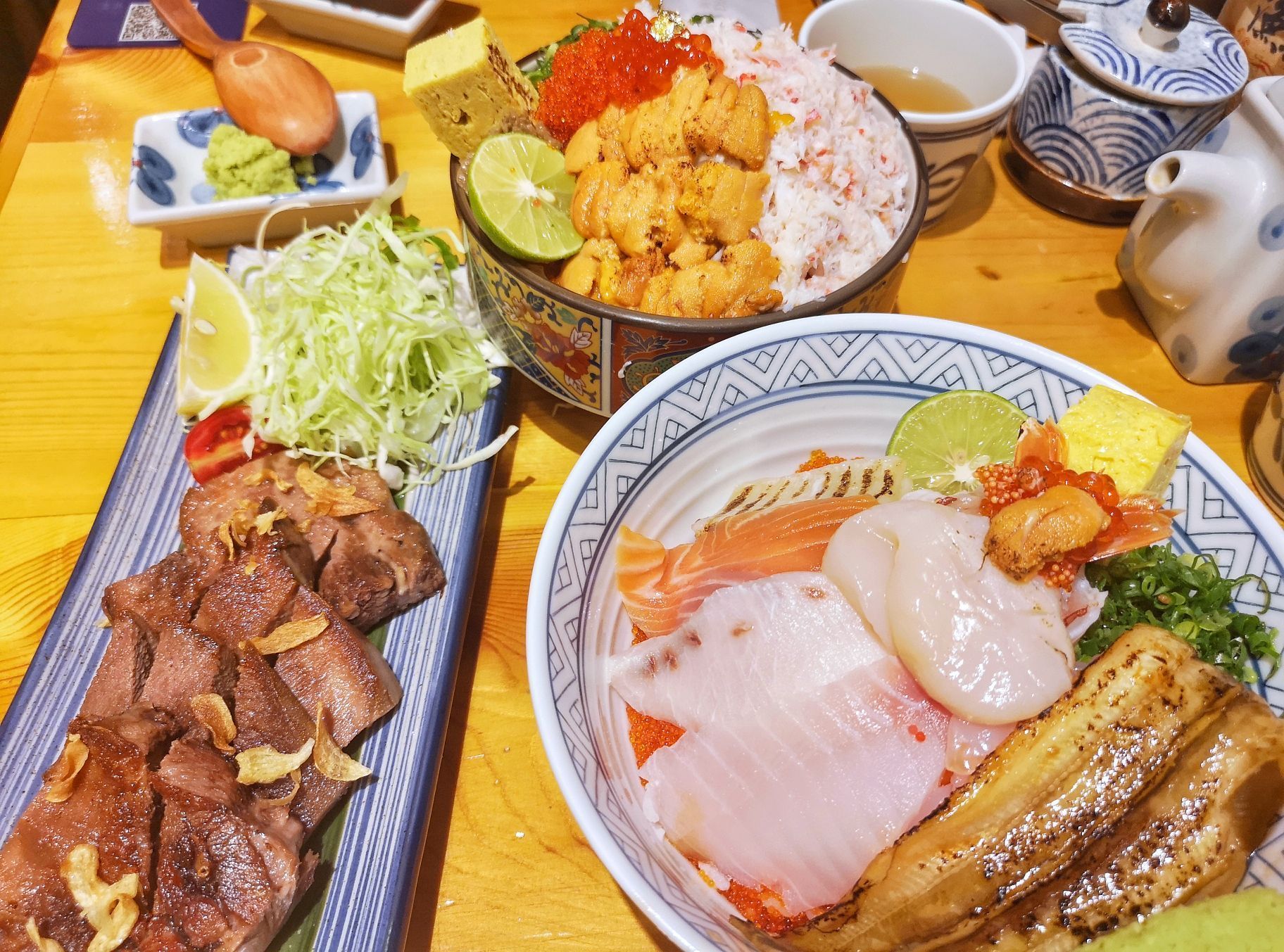 澳門超讚的一家海鮮丼店,位置在塔石廣場旁邊,很小一家,座位不超過10桌,一定要提前訂座,不然等位要等很久。 北海道蟹肉海膽丼:這個是非常豪華版的丼了,真的一人吃的話除非是飯量非常大的人,不然真的會很撐,裏面有三分之一的海膽,三分之一的蟹肉,三分之一的魚籽,再配上蔥和一些醬料,整碗大得是根本撈不開的感覺,搭配著芥末醬油,真的是忍不住大吃幾口; 招牌魚兵丼:裏面有好幾種魚生,三文魚、北極貝、魚籽等,也是搭配芥末醬汁,份量沒那麽大,一個人吃剛剛好; 特上鹽味牛舌:這道是小菜,牛舌做得很嫩,一共有10片左右,口感很佳。 環境很有日式的feel,位置比較窄,如果是家庭帶著小朋友來相對不是太方便;店裏沒有wifi,但卻是直接掃碼點單的,然而無法在綫支付,支付方式接受多種(最後一張圖視);服務還行,店員們很忙碌,但是上菜還蠻快的。 價位有點小貴,人均這樣三樣差不多250葡幣一個人,但是這裏的海膽很出名,而且一般要提前預約