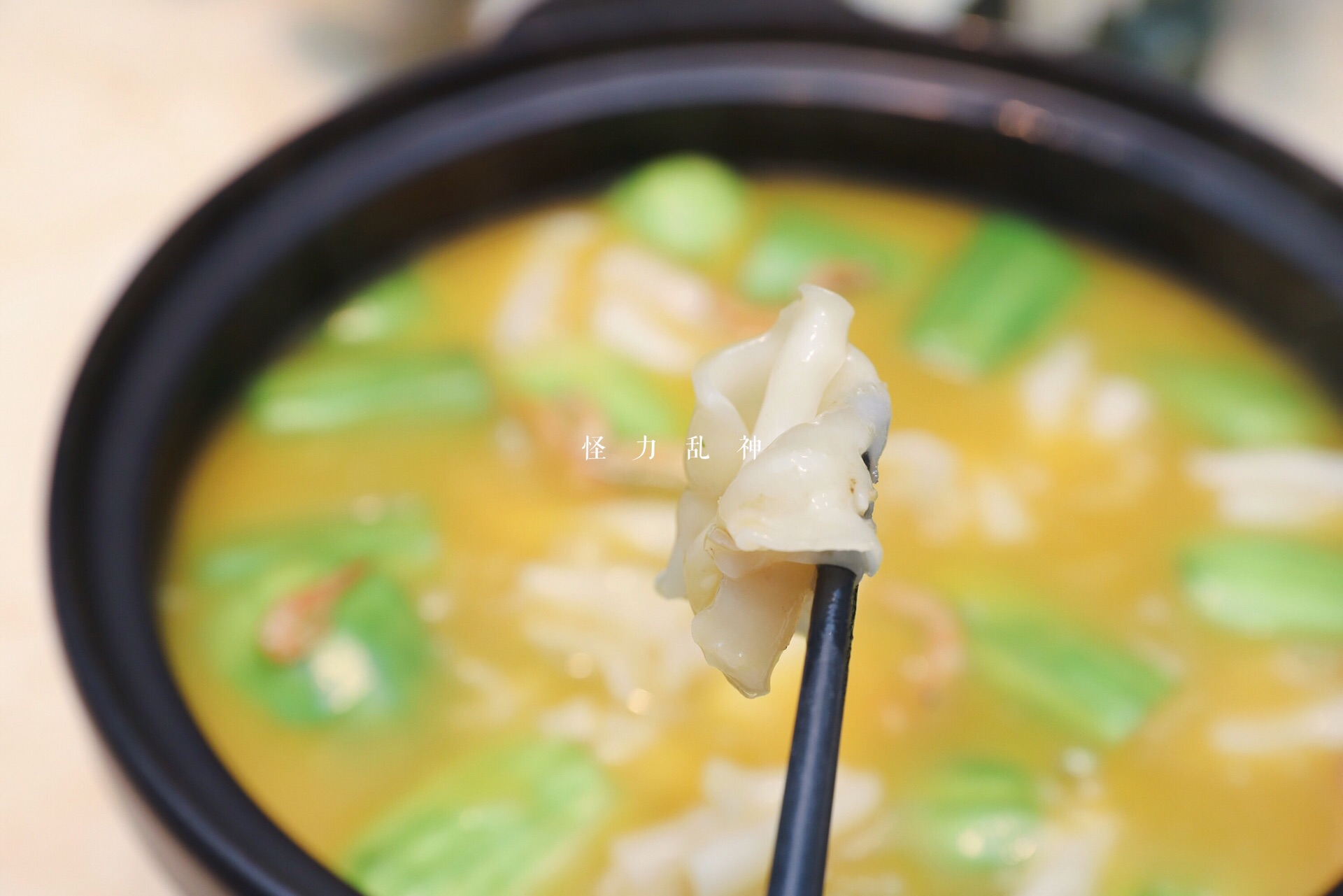厦门的夏天,总是开始的特别早。上饍的夏日菜单,给大伙儿吹来了一股清风。粥水翅针贵妃蚌,用海鲜熬过的粥水鲜味逼人,倒入鱼翅和贵妃蚌中,香味瞬间弥漫开。来上饍不吃烤鸭,算是白来了,不过一定要记得预定。烤鸭最好的脆皮是在鸭肚子上,将上好的鱼子酱装点其上,再用面包片做底。鸭皮闪着金黄的色泽,十分诱人,咬一口,鱼子酱的味道在口腔里迸发,混合烤鸭皮的脂香,令人难忘。樱花虾花胶煮翡翠丝瓜,樱花虾的鲜味浓郁,花胶和翡翠丝瓜煮出来的汤底,每一滴都很清甜。海钓的黄鱼鲜美难挡,搭配筋道的面线,撒上些许胡椒粉,连汤也一同喝掉,一滴不剩。