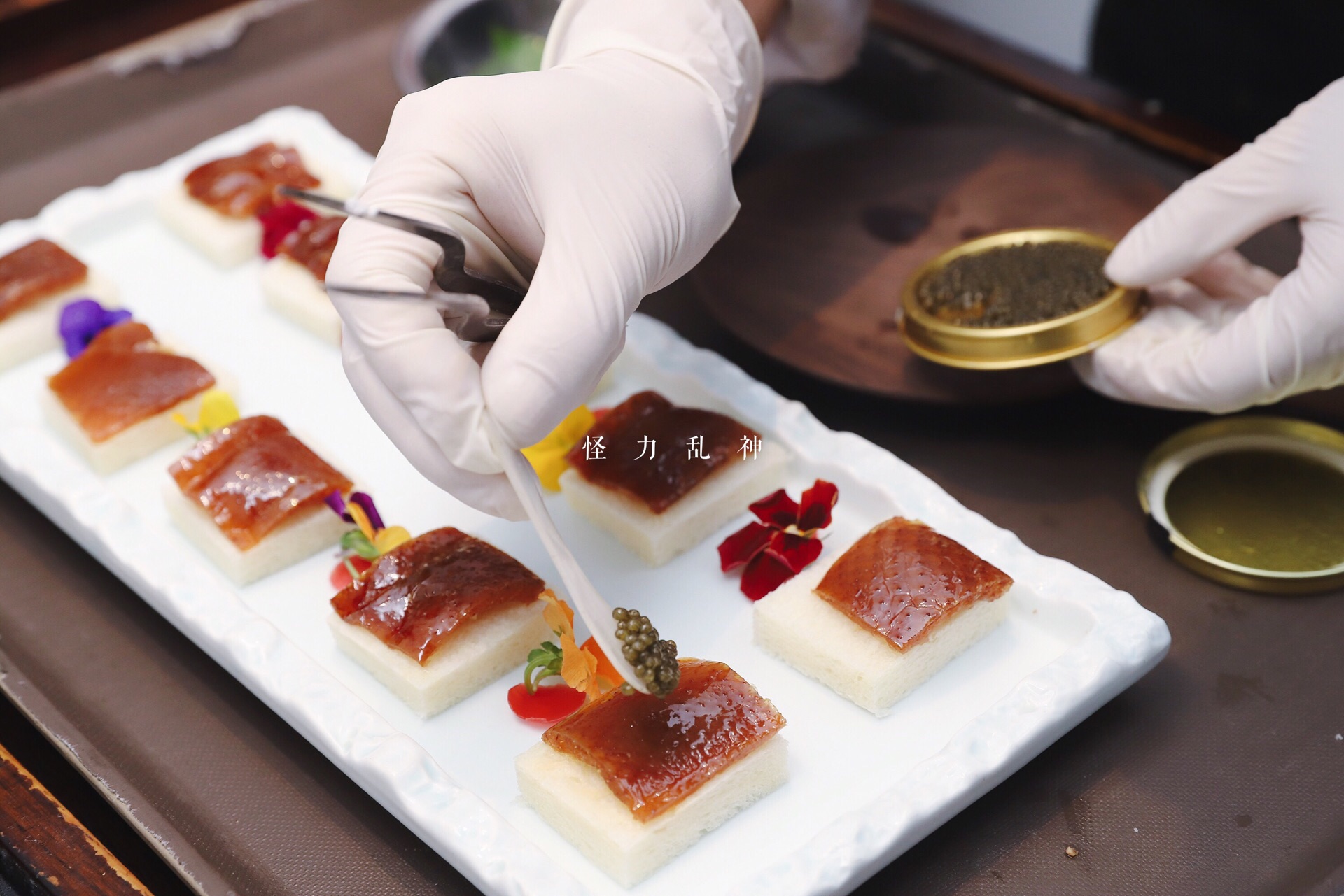 烤鸭最好的脆皮是在鸭肚子上,将上好的鱼子酱装点其上,再用面包片做底。厦门的夏天,总是开始的特别早