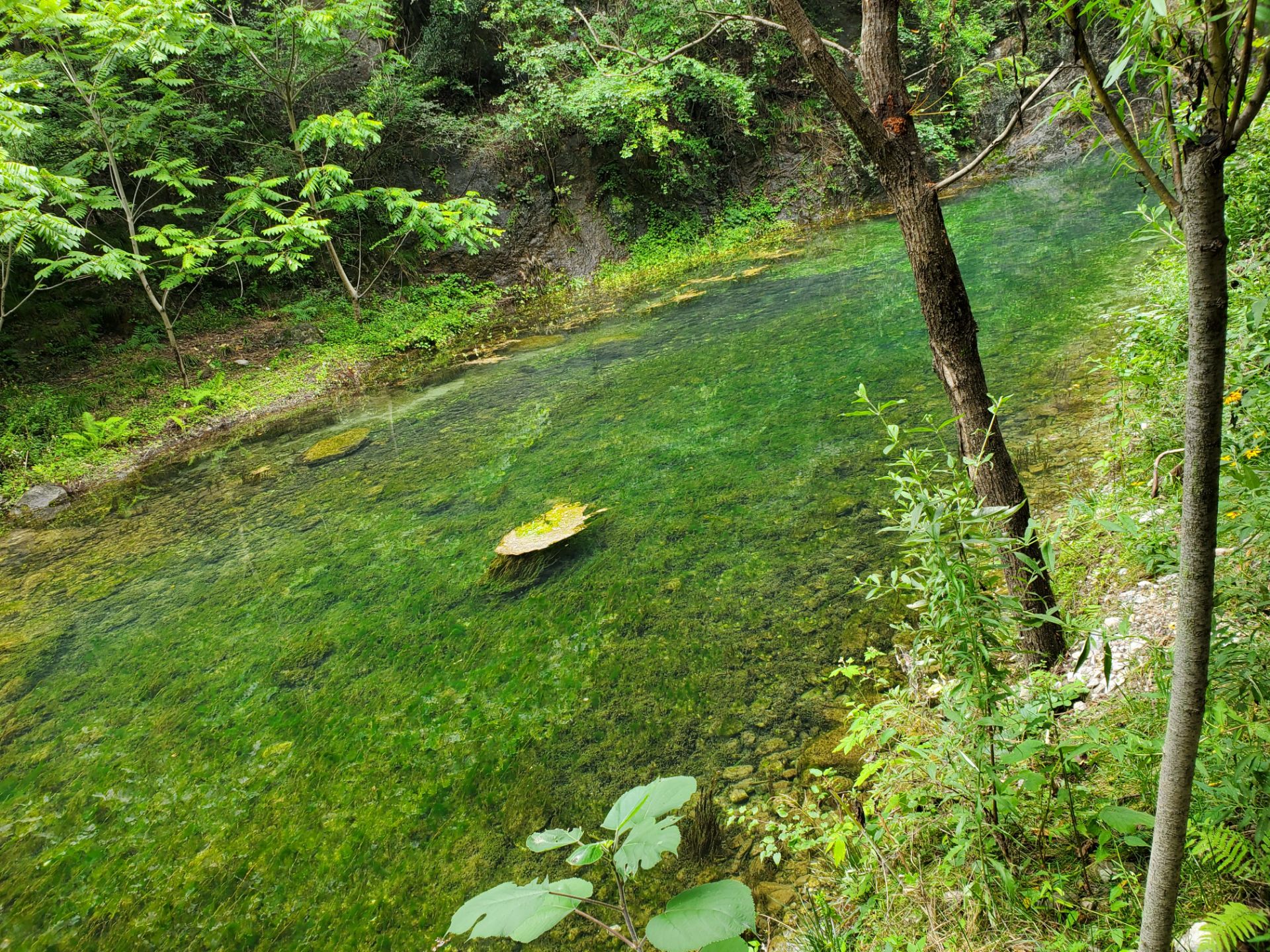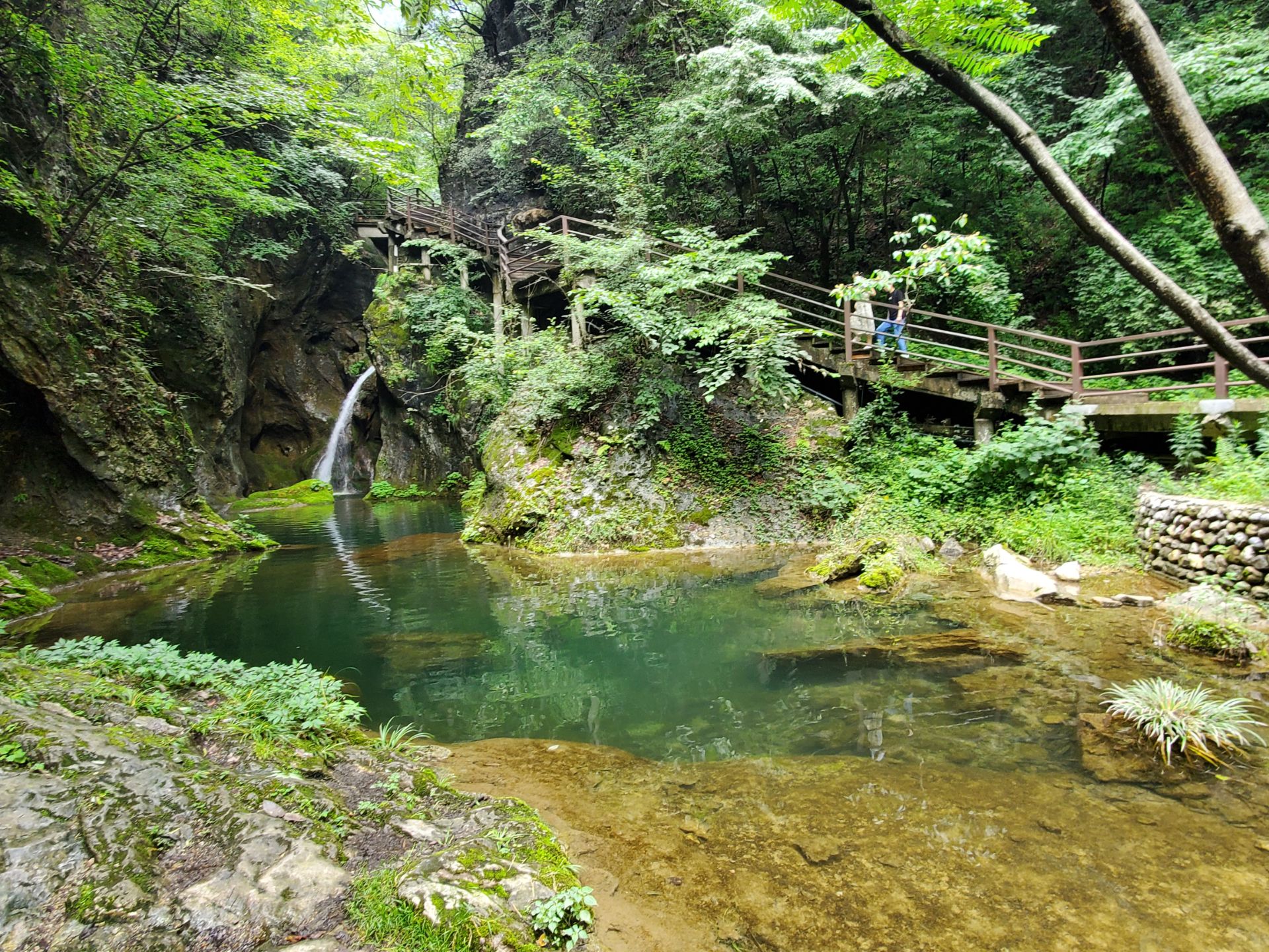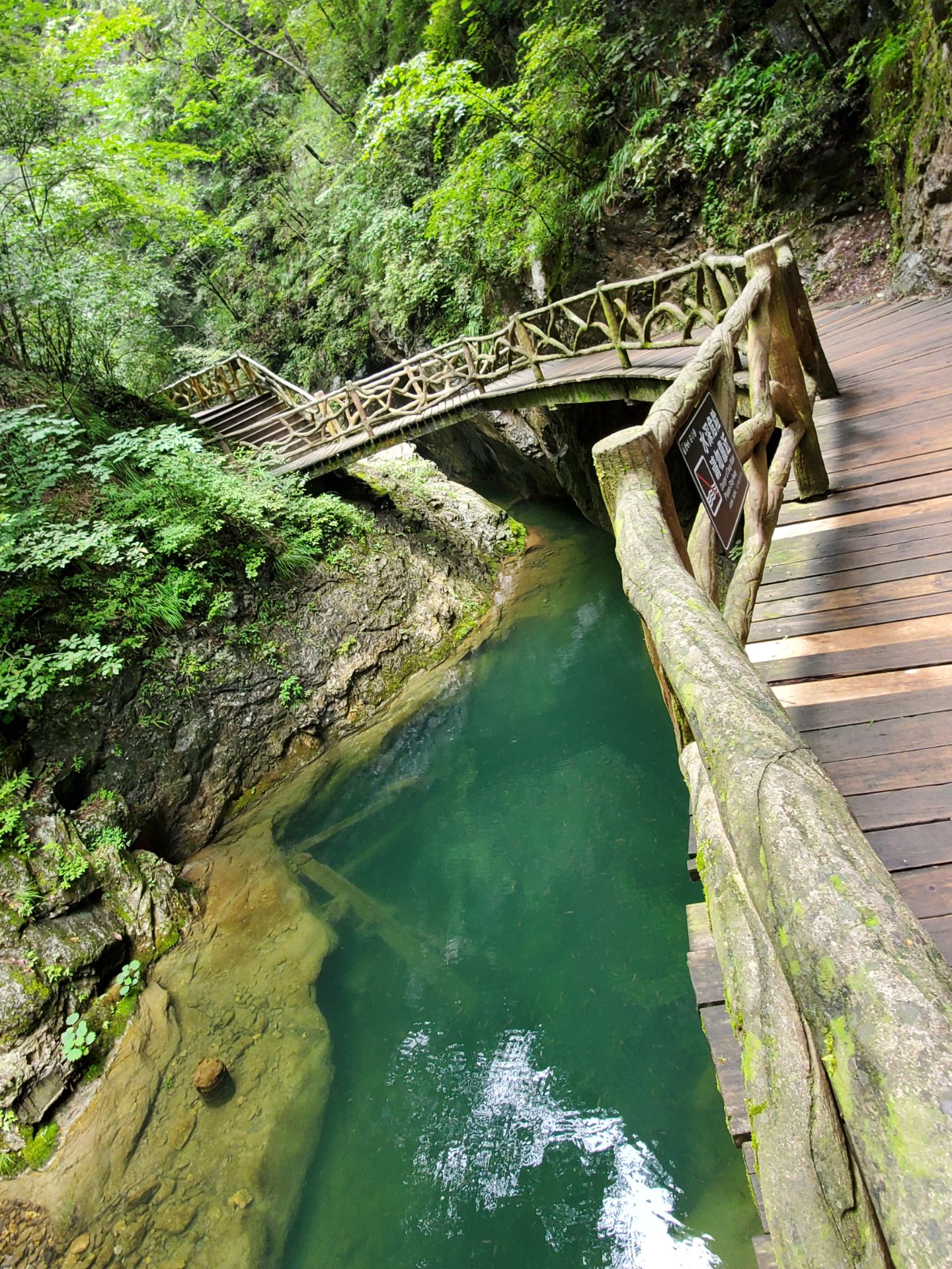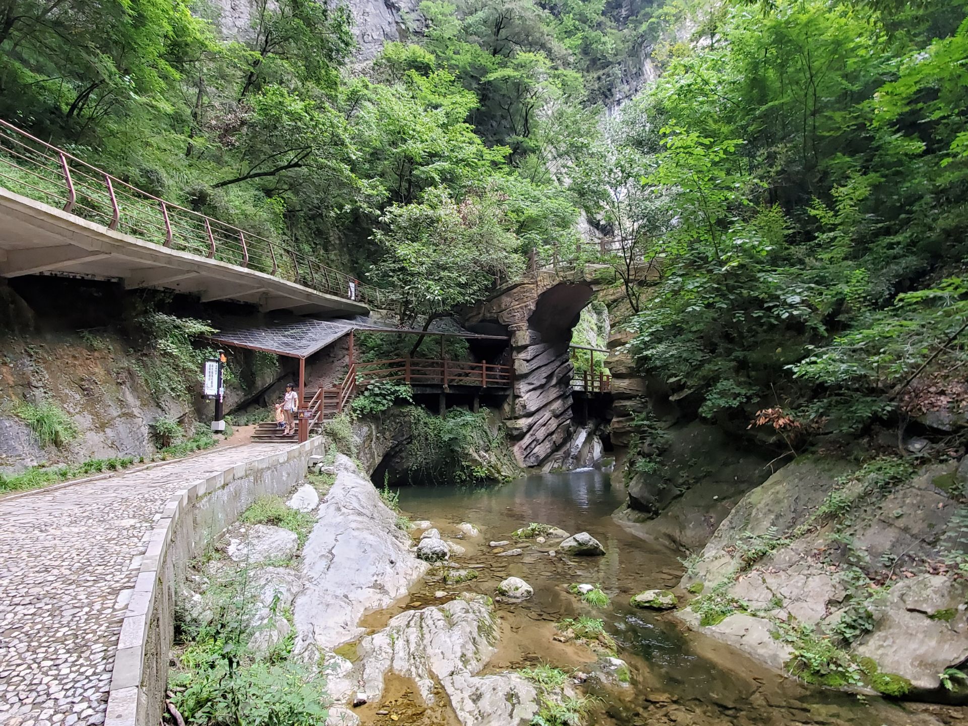 12:15检票开始游程,一路下行10.3公里,绿被丰富,景色还不错,15:00出景区到停车场11:00北门停好车,坐车到南门,等车40分钟,开35分钟到南门。 12:15检票开始游程,一路下行10.3公里,绿被丰富,景色还不错,15:00出景区到停车场。 走得挺累的,很佩服上行爬山的游客。