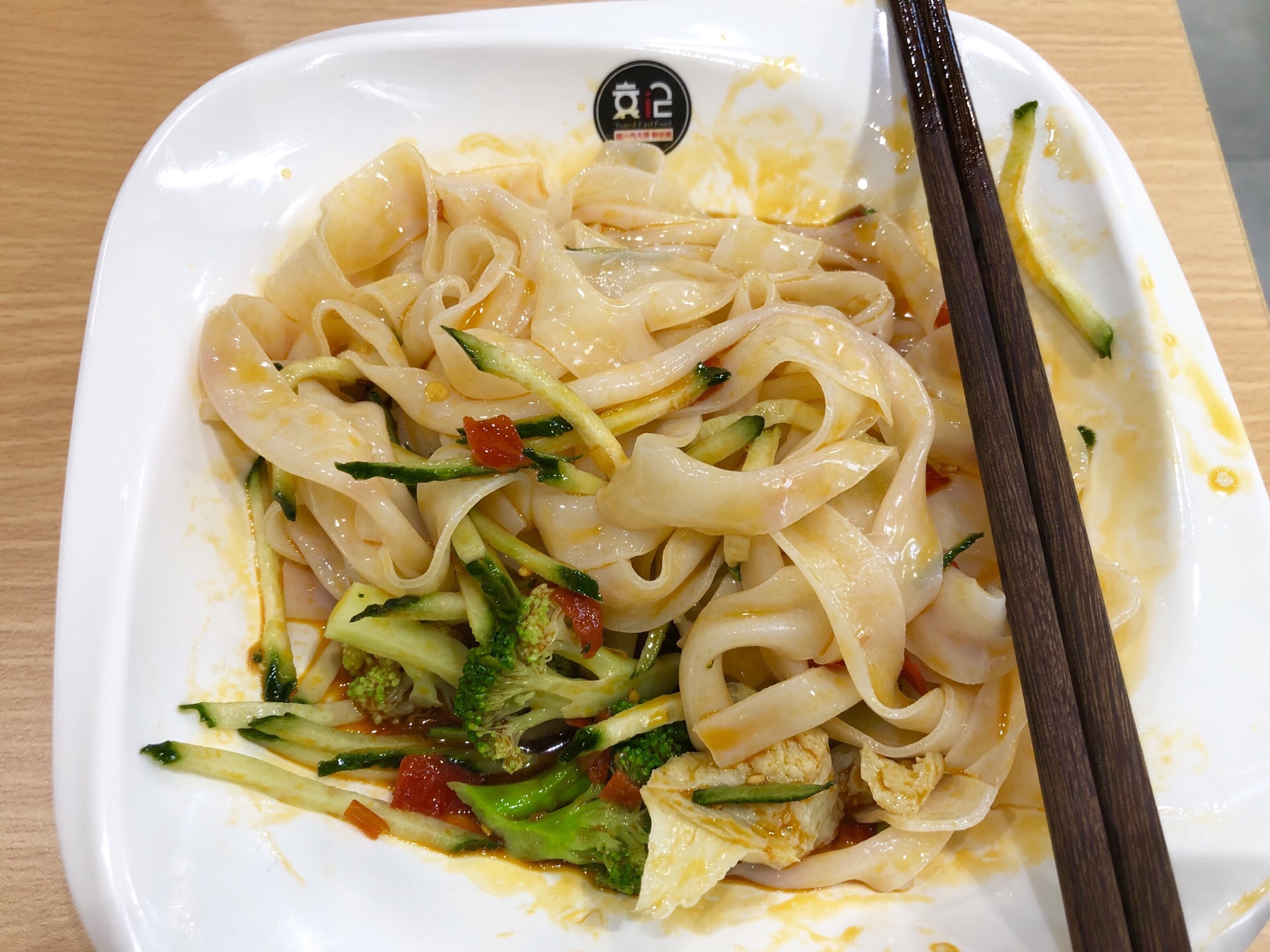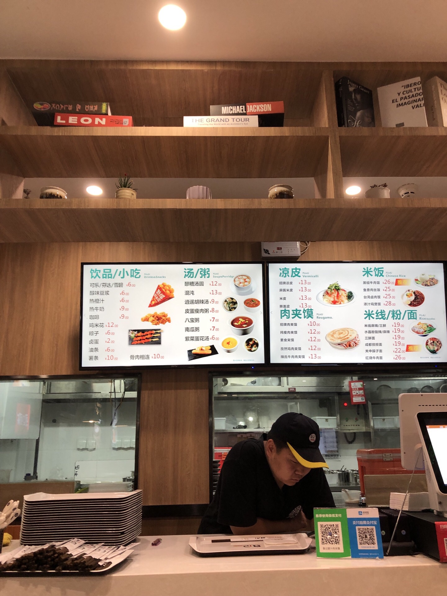 好吃的肉夹馍来一个! 来郑州参加比赛结束后随便逛逛,看到这家快餐店感觉挺干净的,点了一个馍,一份凉皮! 招牌肉夹馍:中国式汉堡,哈哈哈,馍炕的外皮酥脆,肉不是纯瘦的那种带点肥肉,剁成小丁夹上青椒碎丁,浇上一些肉卤汁,阿呜一口~我滴个乖乖,鲜咸清香,咋这么好吃呢!除了个头小,其它沒毛病,哈哈哈~ 招牌凉皮:凉皮筋道,配上少许面筋,黄瓜丝西兰花滴点香醋酱料,淋上少许香油,在灯光下显得油润滑爽,香气四溢,还没开吃就已让人不禁食指大动!除了份量少,其余沒毛病 吃完逛到火车站坐车回家喽[呲牙]