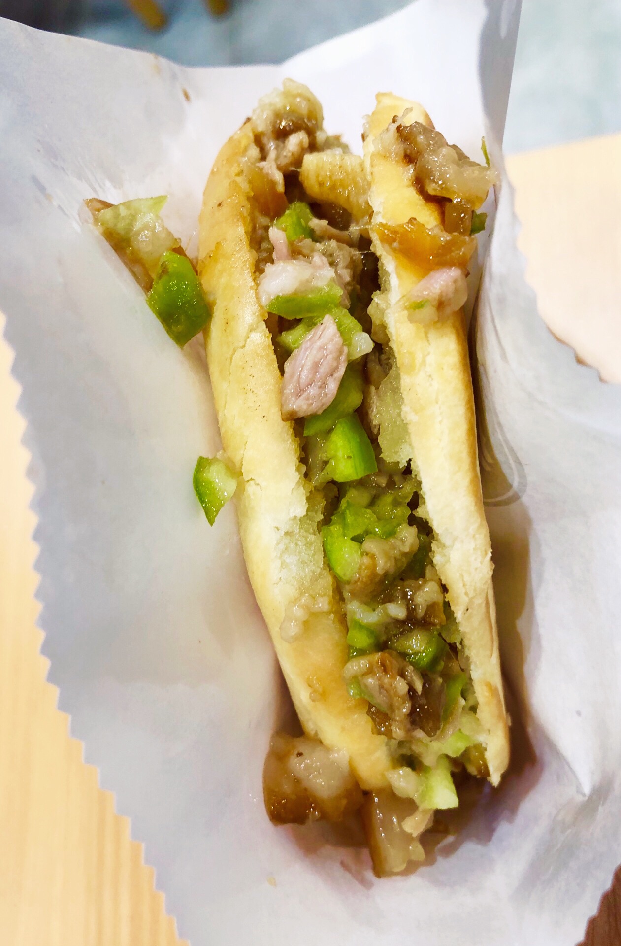 好吃的肉夹馍来一个! 来郑州参加比赛结束后随便逛逛,看到这家快餐店感觉挺干净的,点了一个馍,一份凉皮