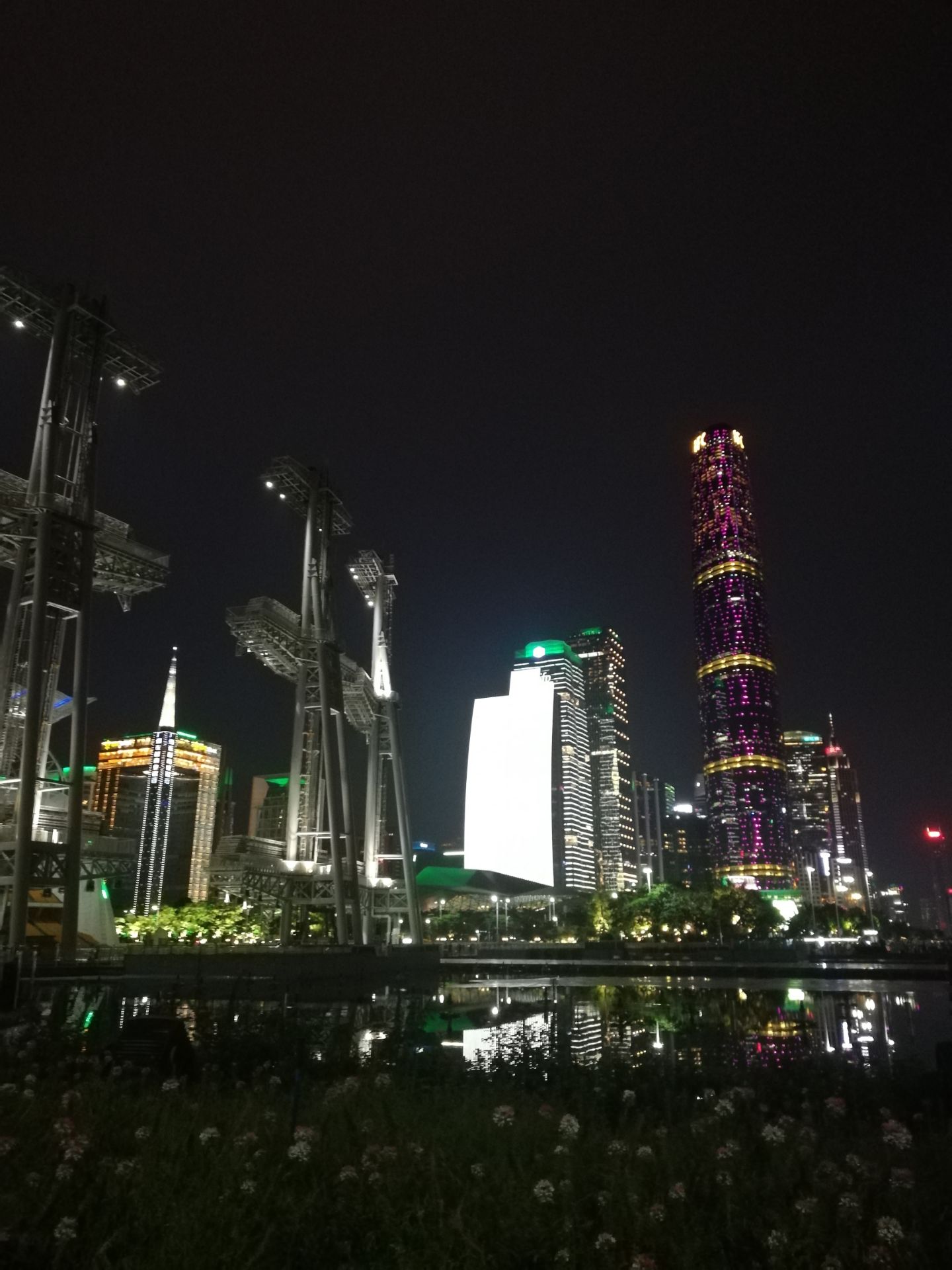 但是我却特别喜欢西塔的造型,尤其是在晚上的时候,他就像一个纽带一样处理在珠江新城之上
