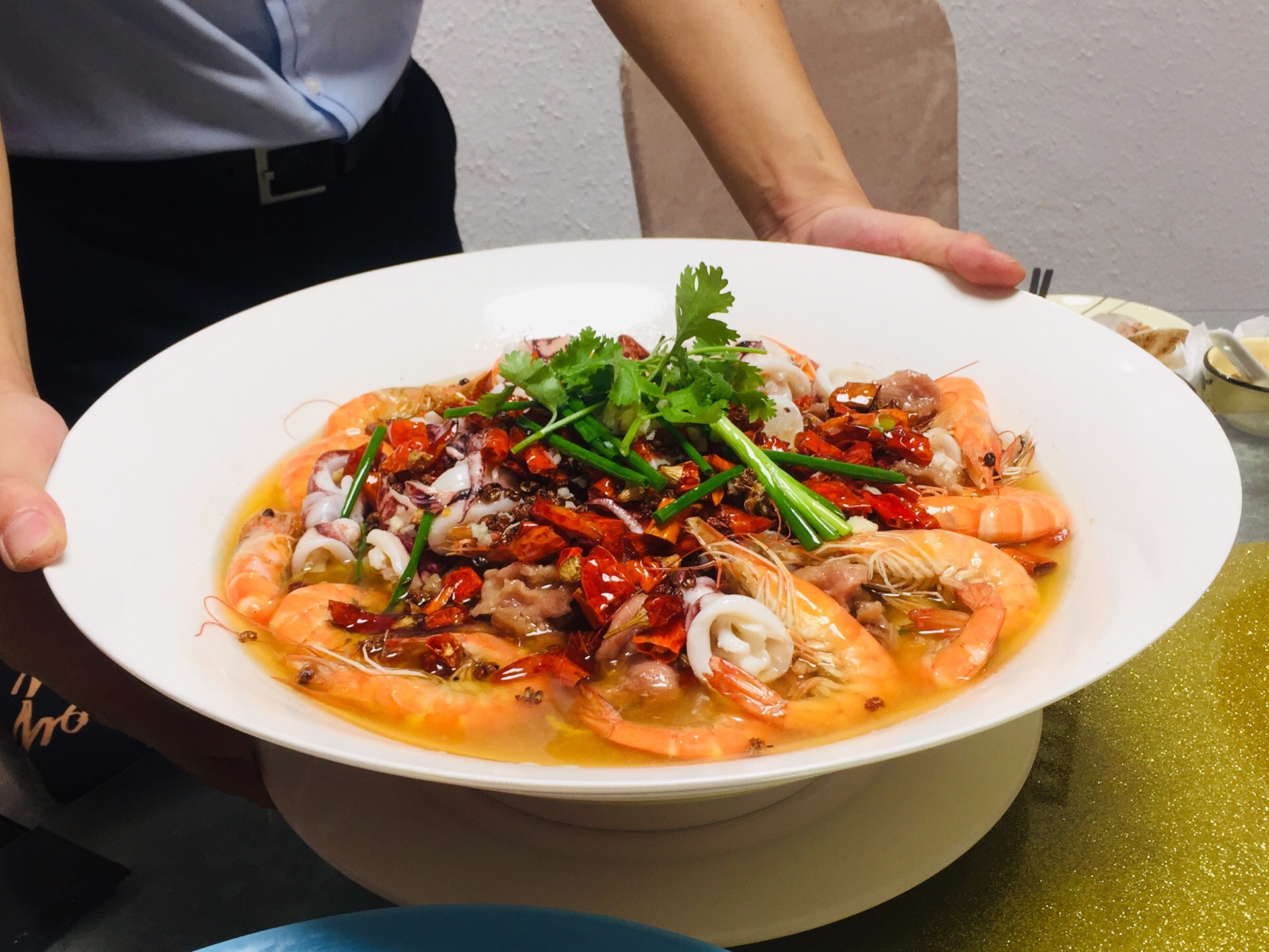 ❤️鲜食代,一家只有大小包厢,口味很棒的餐厅。 其位于东渡夏商怡庭快捷酒店旁,百度导航精准,有很大的停车场。 两层楼,古厝的装修环境独具特色,没有大厅,全是大小包厢,私密性很好。 同安封肉,古老而又神奇的蒸肉做法,香气扑鼻,吃起来肥而不腻,亲戚吃过一次就念念不忘。 水煮三鲜,份量惊人,鲜红的大虾、Q弹的小管和美味的肉羹等,满满地堆成了小山,整大盆都是真材实料的美味,吃得很过瘾。 鲍鱼片炒蒜台,非常脆爽美味的一道佳肴,一口惊艳。 主食推荐紫菜炒饭哈。
