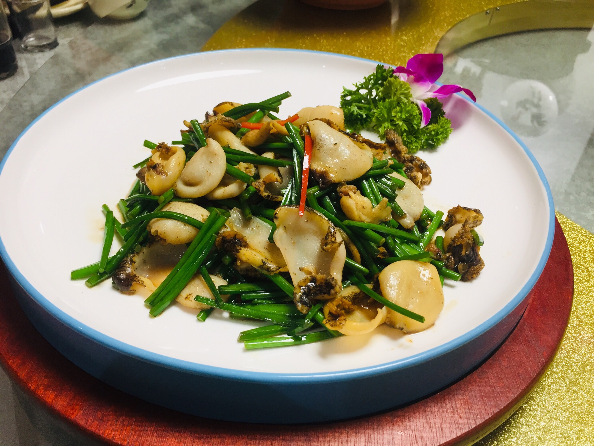 鲍鱼片炒蒜台,非常脆爽美味的一道佳肴,一口惊艳。 主食推荐紫菜炒饭哈