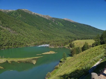 湖四周森林茂密,繁花似锦、绿草如茵,湖中小岛景色秀丽,湖进水处巨石抵中流,激浪拍巨石,玉珠飞溅卧龙湾位置处在布尔津县去喀纳斯的途中距县城140公里,距喀纳斯10公里,平均海波1350米。湖四周森林茂密,繁花似锦、绿草如茵,湖中小岛景色秀丽,湖进水处巨石抵中流,激浪拍巨石,玉珠飞溅。