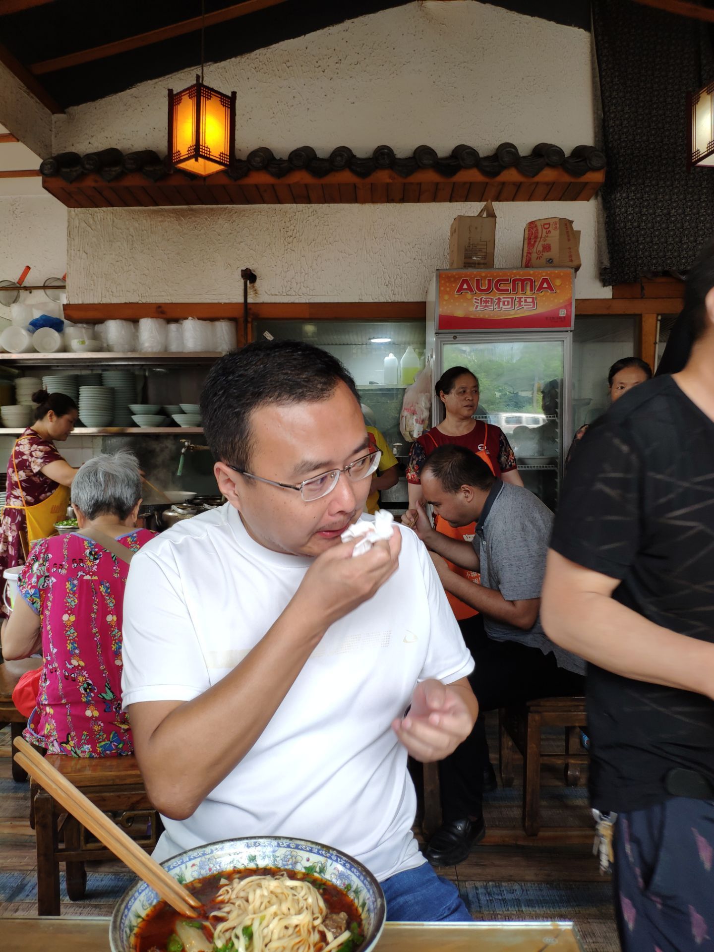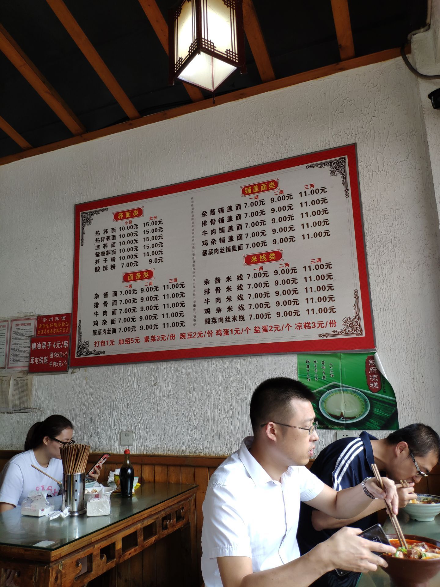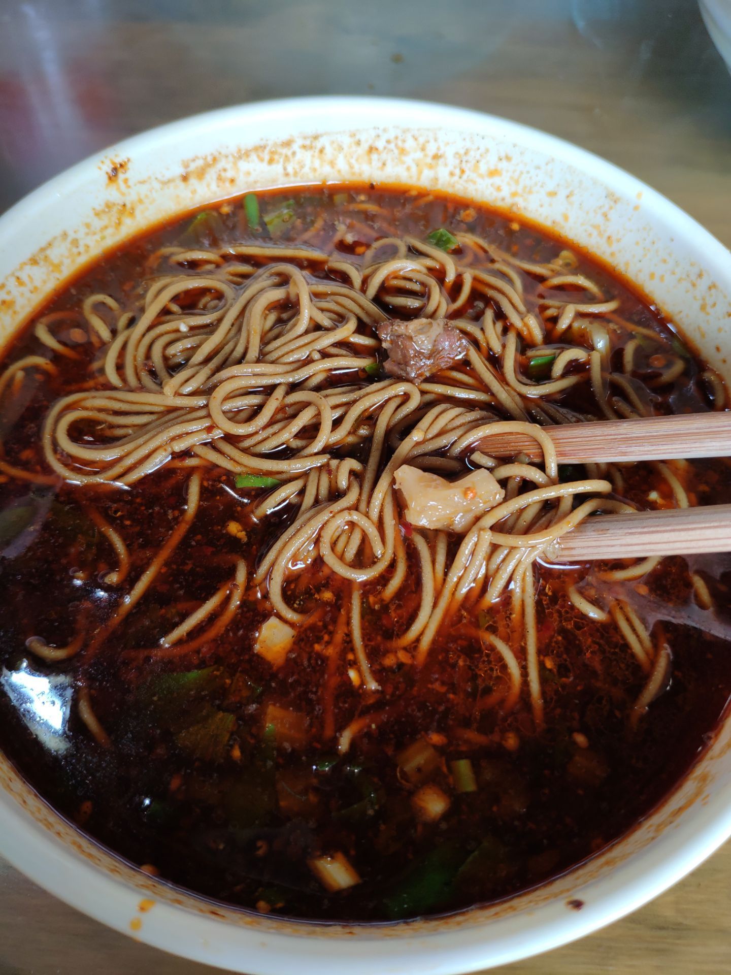 骑着我的小电驴进城,中午路过这里决定来碗荞面。 [环境]在路口上,对面是青石桥家乐福。铺子简单装修了一下,没有什么环境可谈,还是和从前一样拥挤。店铺一直人都多,这么多年都是这样。 [服务]一般,效率比以前低。 小碗热荞面10元,辣度适中,花椒放太多。本来平时是可以整碗大的,这次连小碗都没有吃完。