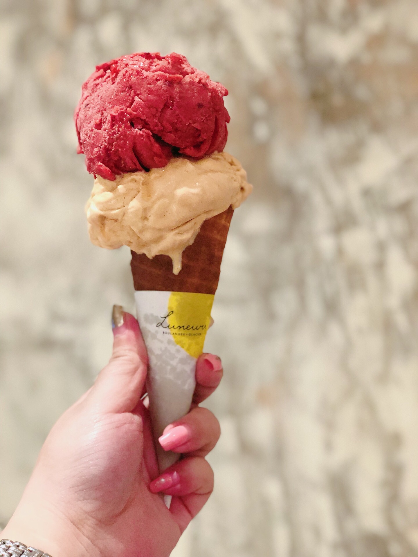 魔都最爱的几家冰淇淋之一,性价比无敌! 虽然冰淇淋只有四种口味,而且久久不换,但依然很爱它。 焦糖海盐口味最嗲,然后是黑莓和树莓、伯爵茶酸橙酱、黑巧克力。 这里的各种可颂面包也不错,苹果酥可以有,原味可颂也美味。