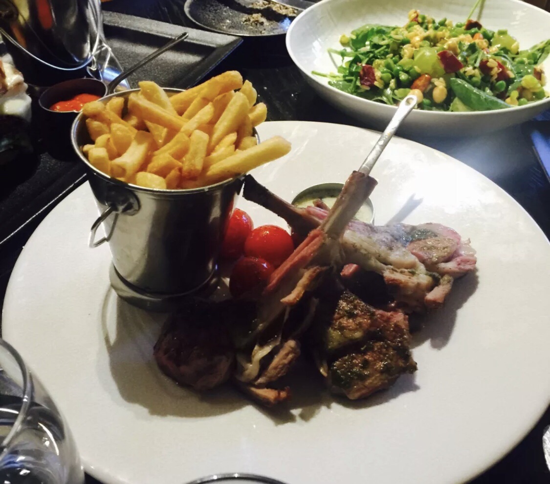 ...鲜嫩哦,同行小伙伴不饿,点了咖啡和面包,面包认真烤过,很好吃,沙拉水分很丰富,新鲜水灵~好吃哦克制住了自己没有再点炸鱼薯条……点了烤羊排,很鲜嫩哦,同行小伙伴不饿,点了咖啡和面包,面包认真烤过,很好吃,沙拉水分很丰富,新鲜水灵~好吃哦