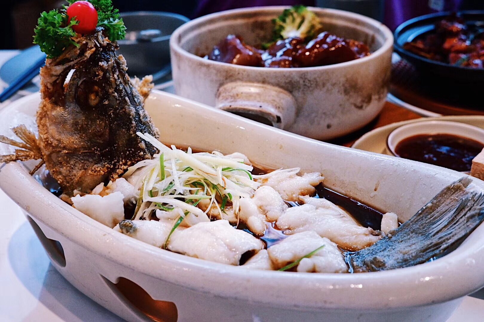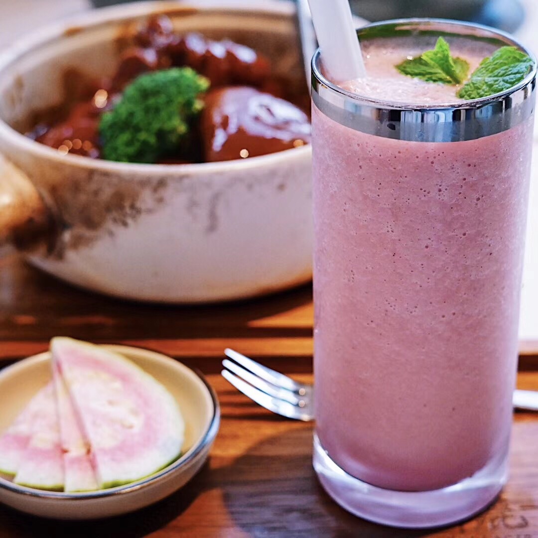 粉红芭乐少女心夏天就要喝喝哒 对鹿港小镇的印象一直停留在三杯鸡和菠萝油条虾,没想到时隔多年悄无声息的它放大招啦‼️这个夏天少女心和芭乐锁了 红芭乐是连喜茶都没有的神仙配方,冰爽沁甜的粉色诱惑不仅颜值赛高,口感上也精益求精惊艳四座,无论制成奶昔或气泡水都相得益彰,小仙女们一起来喝喝哒 难道我会告诉你们,那一锅浓油赤酱的台山猪手煲,我竟然不计形象地怒吃三大块❓酱汁的精华都浓缩在满满胶原蛋白里,唇齿间都对肥美猪手流连忘返,相信你也一定会爱上它。 油淋鲈鱼搭配菠萝炒饭非常下饭呢,石锅蘑菇牛仔粒黑椒入味鲜香四溢,还有家常味道的古法猛火煲猪油萝卜饭,油然而生一种亲切之情。 就连饭后甜品也不容小觑,双拼雪花冰pick了芒果和花生口味,绵密细腻的绵绵冰入口即化,而台湾珍珠奶茶和黑凤梨酥也是相当般配呢,简直就是天作之合的下午茶CP 鹿港小镇(宏伊广场店) 南京东路229号宏伊国际广场第6层