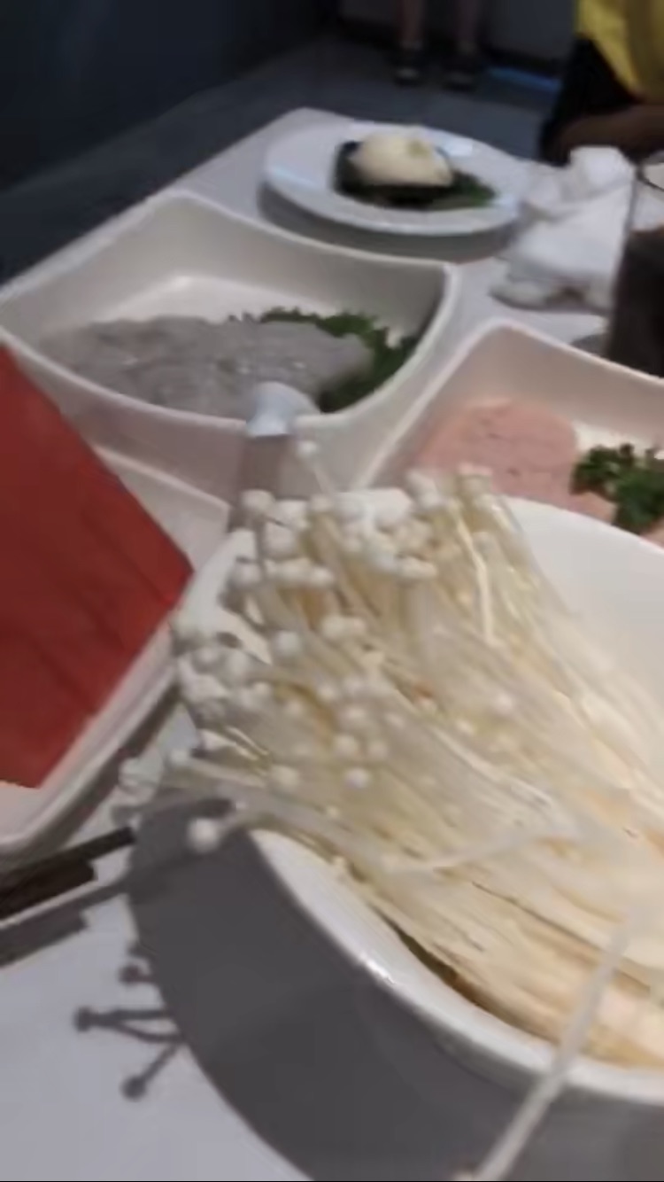海底捞服务挺到位,锅里的汤开了以后,服务员先打三鲜后打麻辣,左手拿碗,右手拿打沫子,在上面轻抹几下便可以,这样打沫后,给人更卫生,干净。吃熟虾,板虾时,配用蒜泥+醋,使用醋碟味道更鲜美,听说有杀菌的作用的。有小孩来给围裙的服务,挺贴心,以免油渍滴在孩子身上。