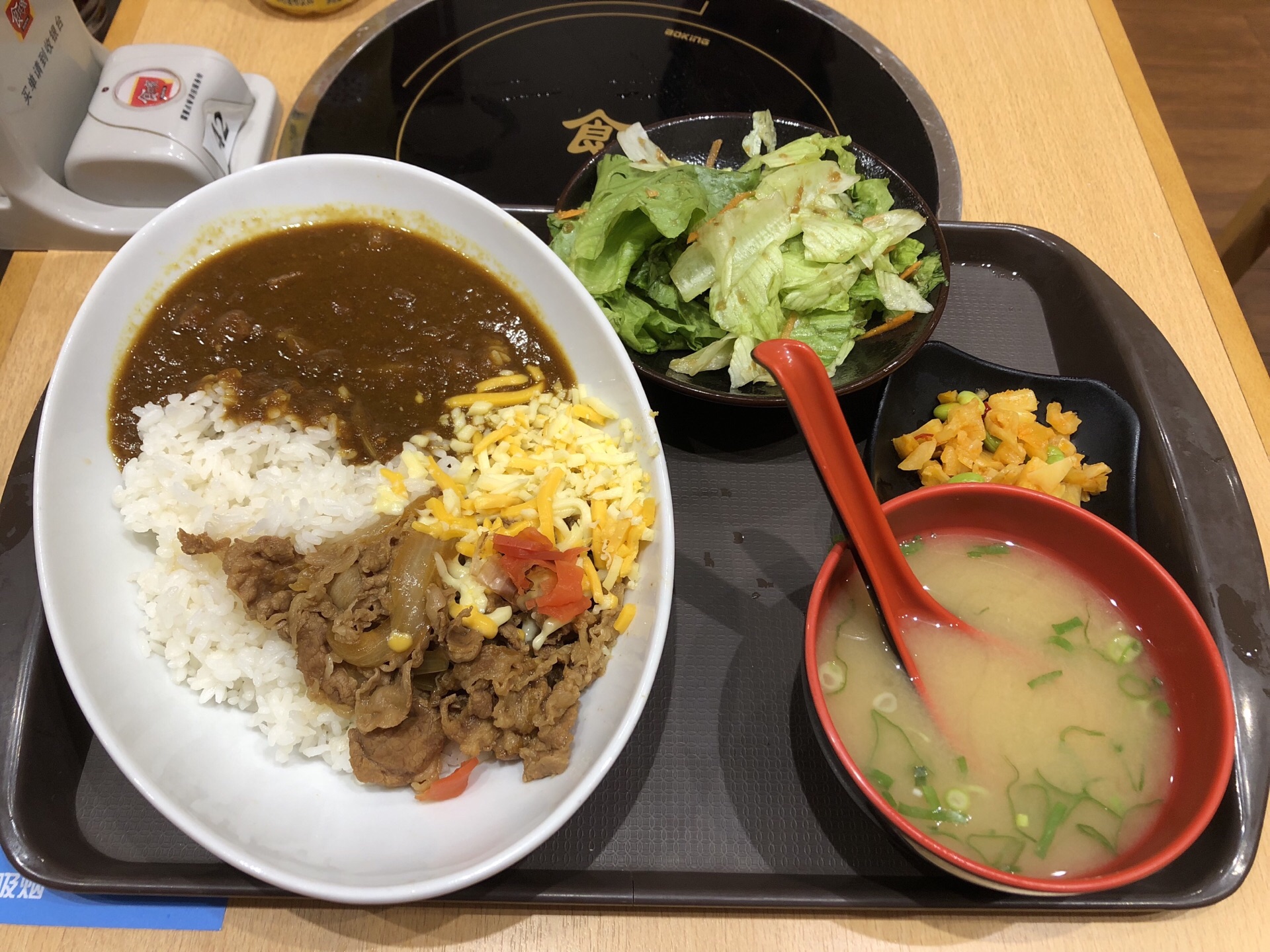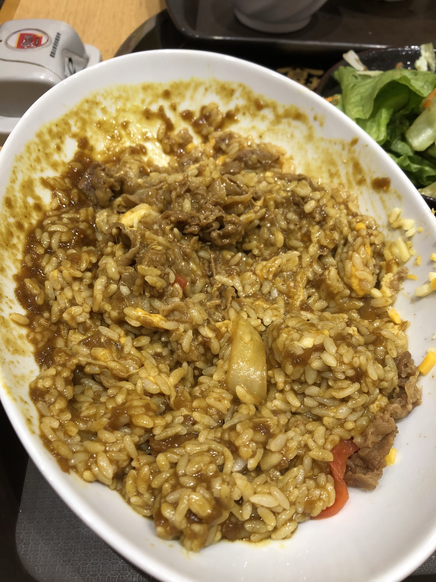 周五跑远一点吃个晚饭…… 「大阪烧风味牛丼」居然还配温泉蛋的!量不算小,味道也是不错。 「咖喱牛丼+芝士」这个算是咖喱饭里的豪华版了!他们家的咖喱带点甜,比印度咖喱更合我口味……芝士趁热拌饭也不错,肥牛也是够量了。最后统统吃完了!中碗的量刚好! 「鲜蔬套餐」加10元可以享受套餐,有蔬菜沙拉,味噌汤和萝卜干,萝卜干太辣了,其他都还不错吧。