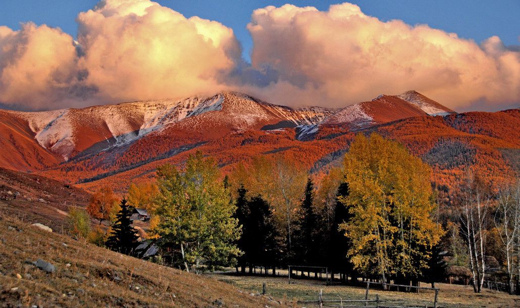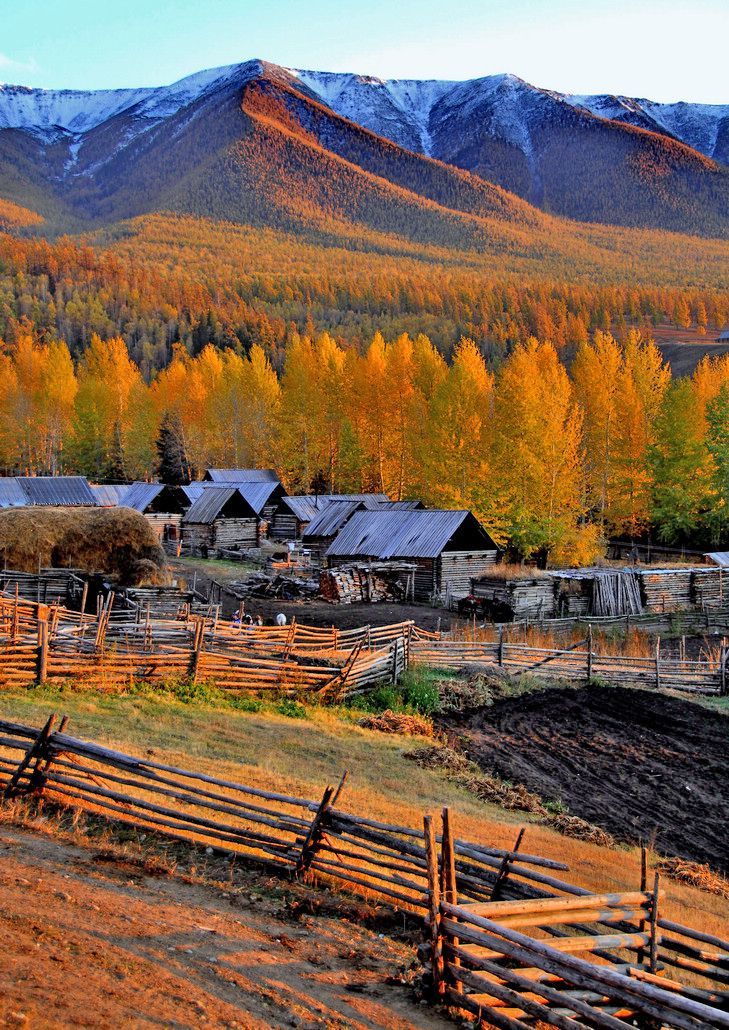 白哈巴有着“中国最美小镇”的美誉。远处还可以看见白雪皑皑的山顶,从山坡上蔓延下来,由远及近,已经被深秋染黄了的金色森林夹杂着一些常青的松树,色彩更加的斑斓炫目,小村庄,独有的木头房子掩映在这五彩的世界里,一条蜿蜒的公路穿过村庄,消失在远方的森林中,眼前的景象,像一幅油画一般赏心悦目。随缘看世界