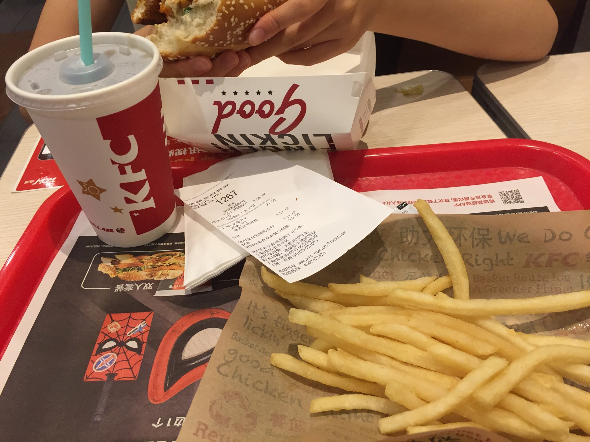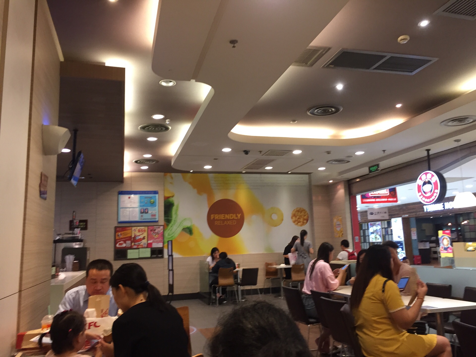 味道还是比麦当劳好吃些。不过服务生的态度挺好的。面积挺大,灯光不是很亮,信号也不好,冷气也不是很足在龙之梦底层大厅。面积挺大,灯光不是很亮,信号也不好,冷气也不是很足。不过服务生的态度挺好的。现在肯德基要点一份完整的套餐,需要拆开好几份来点。味道还是比麦当劳好吃些。