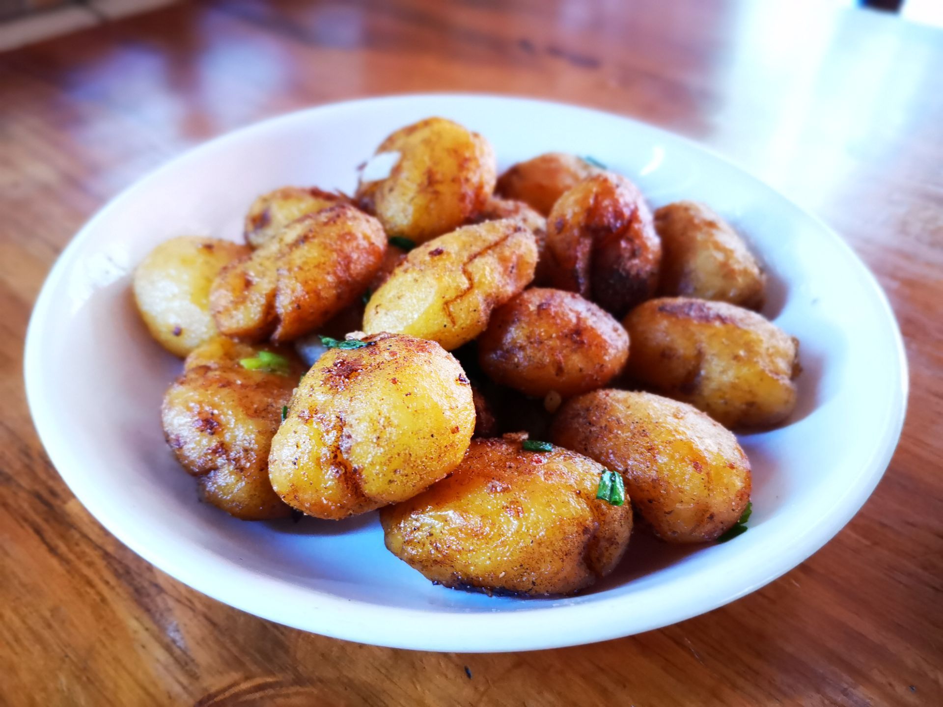 这家丰溢茶楼位于九溪,边上就有很大的一片溪水,很多家长带着孩子在玩水。他家这地理条件算好,周末中午吃饭的人爆满。 |白切鸡^白切鸡上了榜单。做的确实不错。鸡很鲜嫩,蘸点酱油就非常好吃。 |南瓜藤^蒜泥烧的,很清爽。 |椒盐土豆^很香很粉,可以当主食。