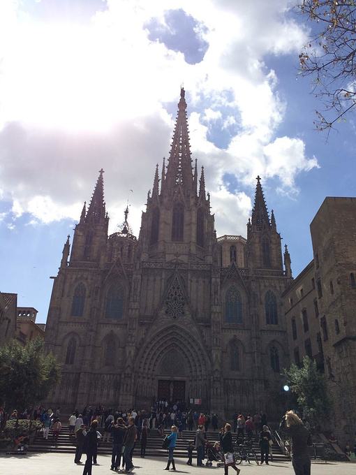 当然这两个教堂都很值得看。这座教堂很大,有五个入口和很多的小的侧面的教堂和现代的萨格拉达法米利亚教堂比起来,这个教堂完全是哥特式的设计。当然这两个教堂都很值得看。这座教堂很大,有五个入口和很多的小的侧面的教堂。也是有着典型的圆拱形外墙,有棱角的间隔的设计。