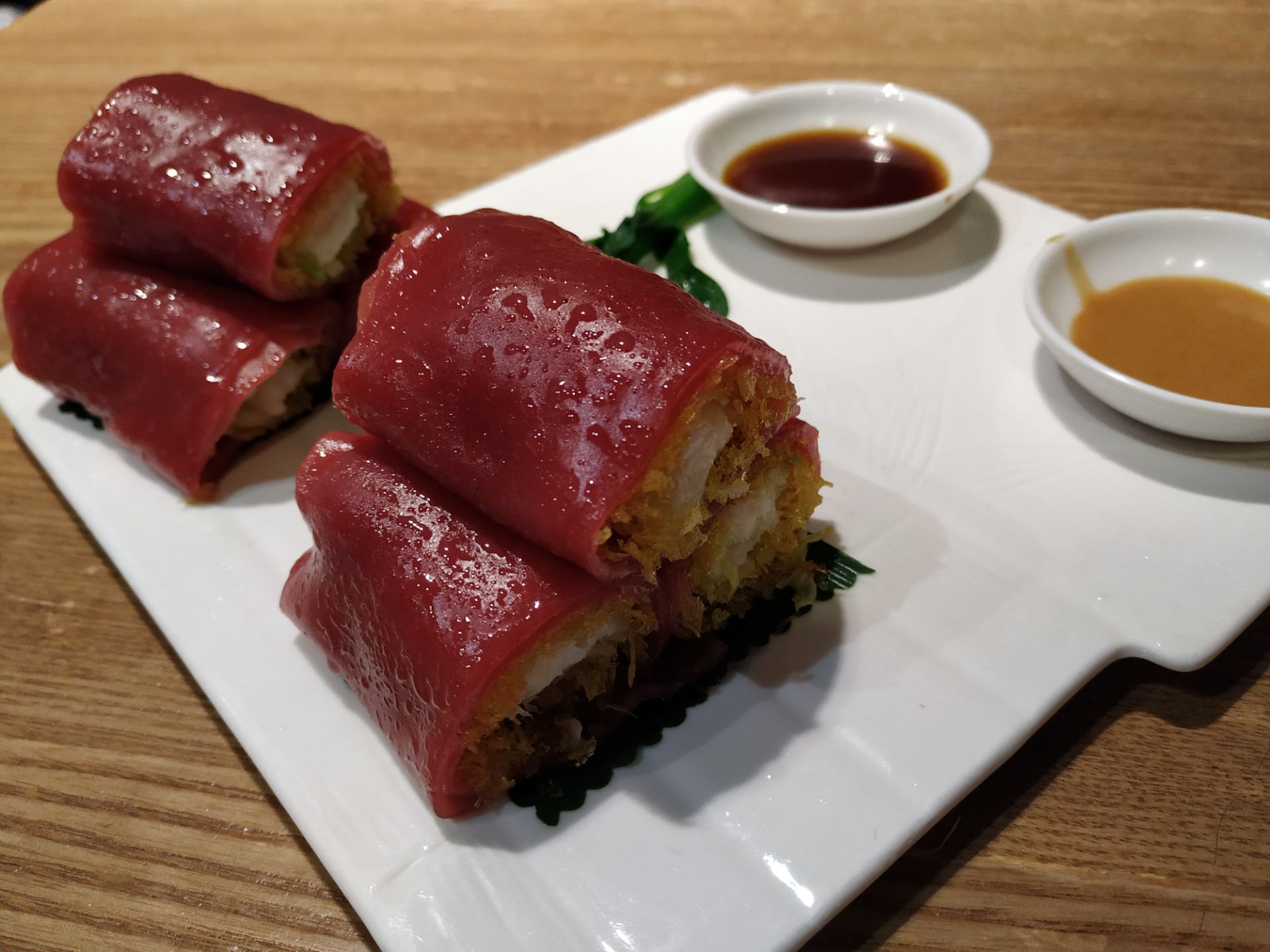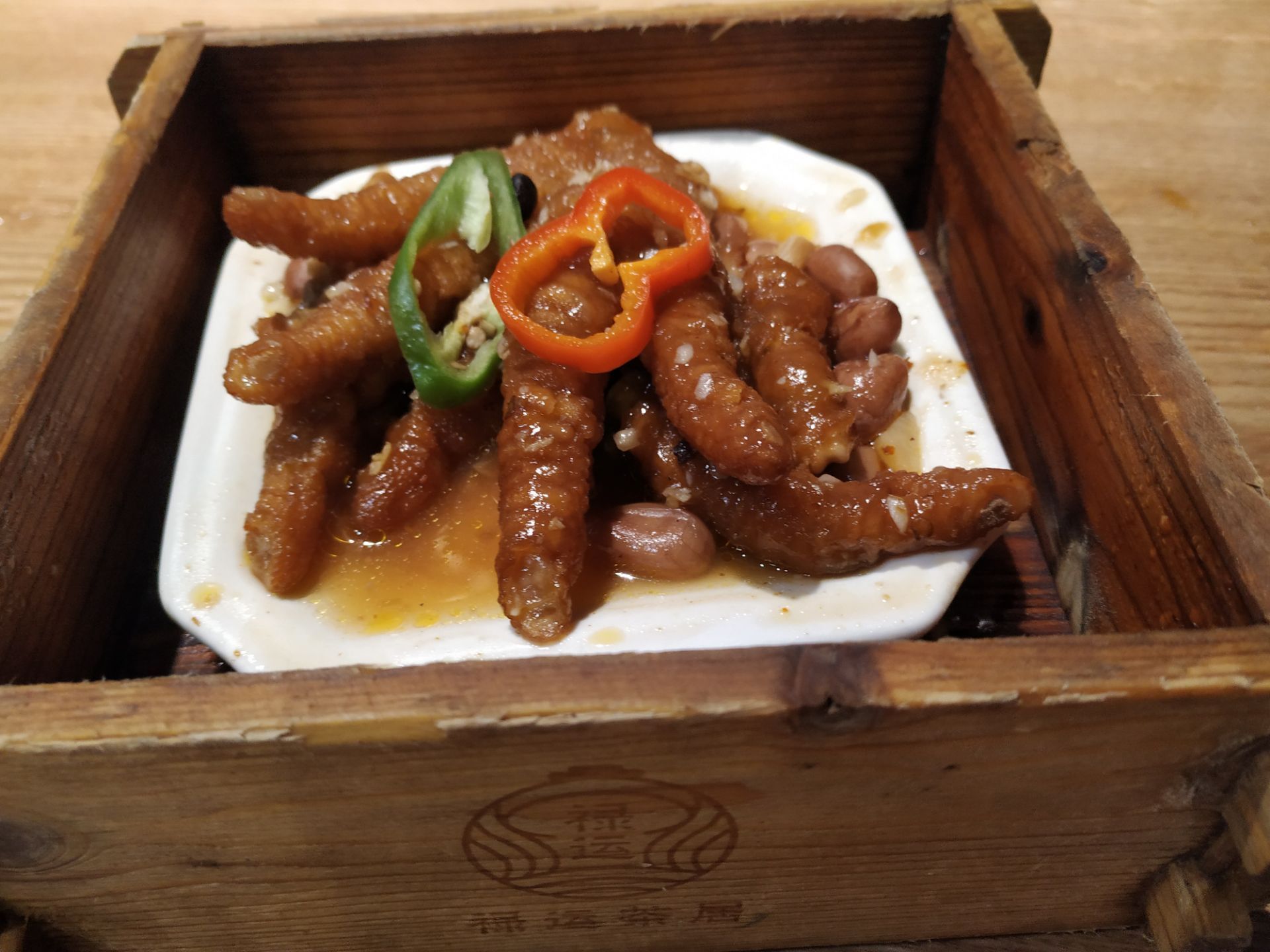 这家“禄运茶居”位置猎德地铁站A出口附近,而且有多路公交车抵达楼下的车站,交通非常方便。餐厅的装修风格简朴、明亮,桌子之间用竹竿或铁杆错落式间隔,挺有点别致的。 来来看点心: (1)金牌禄运虾饺皇,3只虾饺都是个头挺大的,里面饱满的虾仁,外皮薄而透明,很好! (2)云南小瓜金钱饺,挺特别的饺子,在别家未吃过以云南小瓜作为馅料的,小瓜很爽脆,夹杂着肉馅挺清脆的口感,这款饺子的样子也挺好看。 (3)酱皇豉椒蒸凤爪,酱汁好味道,凤爪焖得好淋,好吃! (4)脆皮有机红米肠,红米做成的肠粉皮软糯而薄薄的,中间是脆脆的炸面,里面有点虾仁和肉馅,醮着花生酱或豉油来吃,都挺美味的。 (5)咸香鸡丝鱼茸粥,鸡丝挺好味的,不过有点过老,鱼茸新鲜,可惜鱼骨有点多,这个粥有点欠佳。 (6)滋补美颜红枣糕,非常糯糯的口感,好甜啊,喜欢甜食的人会很爱的。 这家餐厅的性价比不错,服务员的态度也很好。有空会再来的。