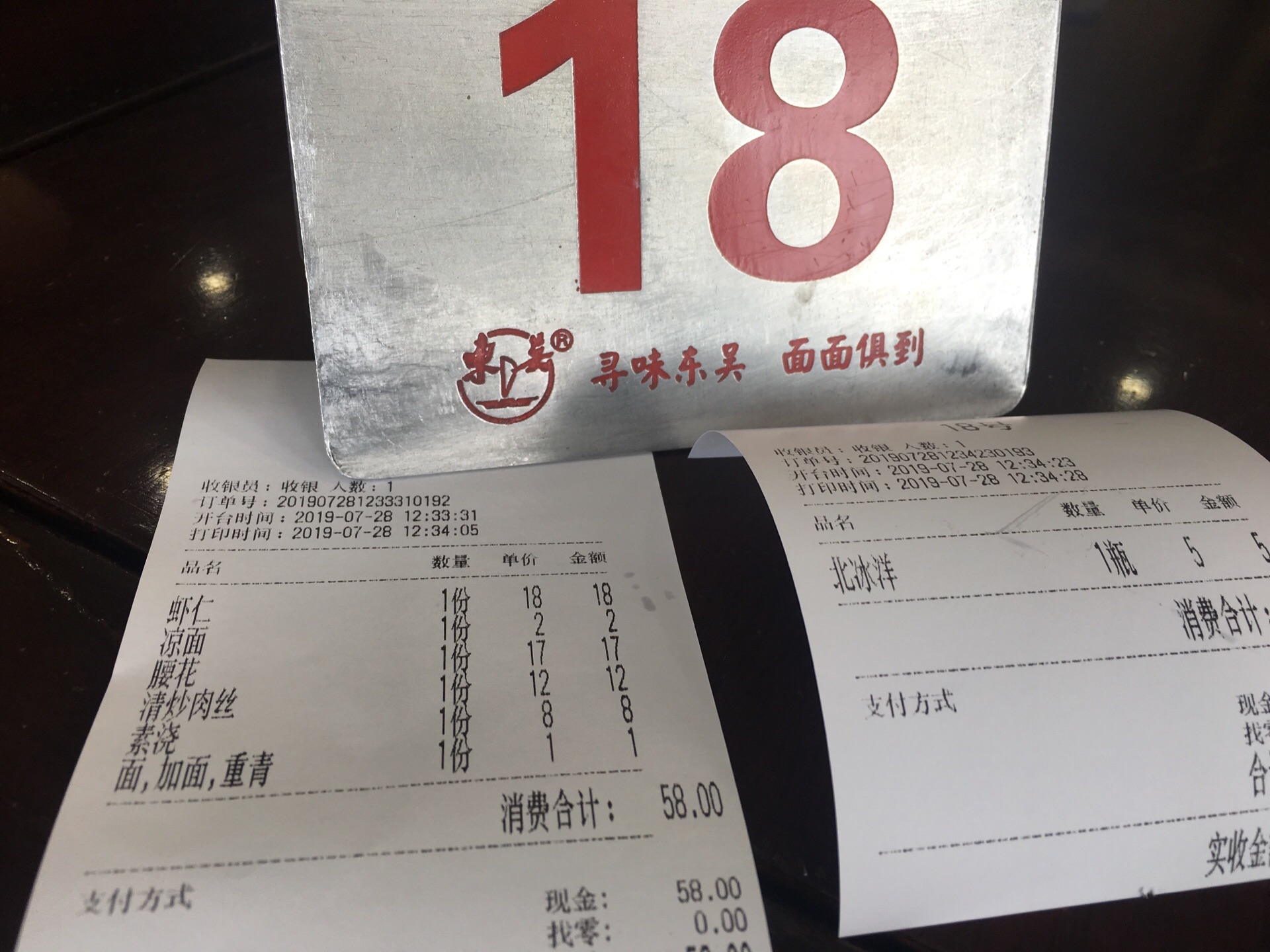 不想吃辣的可以选热拌面。东吴面馆的面还是很不错的,夏天比较热吃不进汤面就来碗凉拌面东吴面馆的面还是很不错的,夏天比较热吃不进汤面就来碗凉拌面。微微带点辣味,只是18一份的虾仁量实在是太少了。不想吃辣的可以选热拌面。