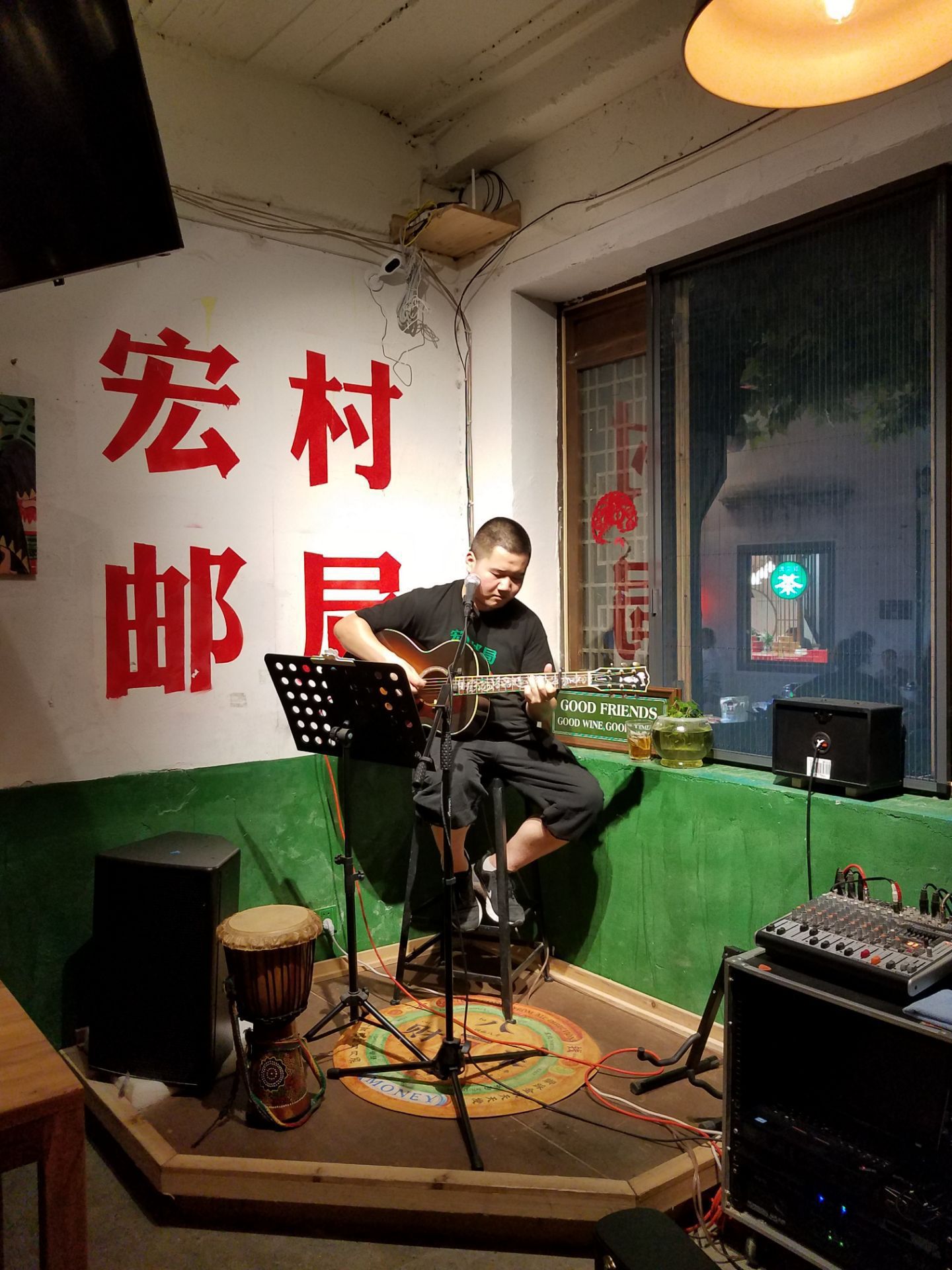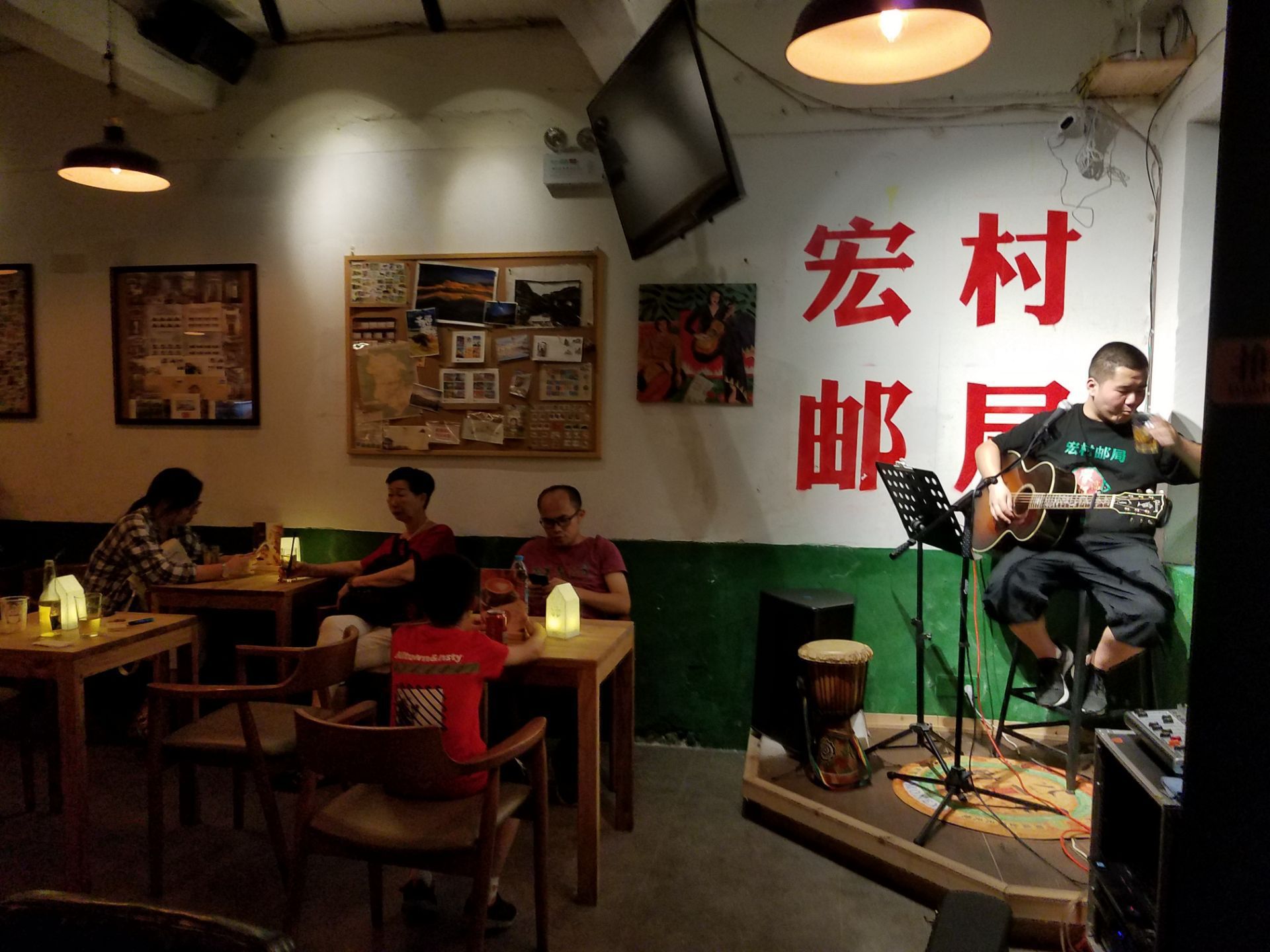 夜晚在宏村的老街上闲逛,意外发现宏村邮局里面传来歌手弹唱的音乐,进去一看果然是酒吧,哈哈……一间不务正业的邮局。 歌手唱歌很不错好听,音乐也不会太吵 酒的价格跟景区内其他几家酒吧比便宜不少,来宏村的朋友可以去坐坐。
