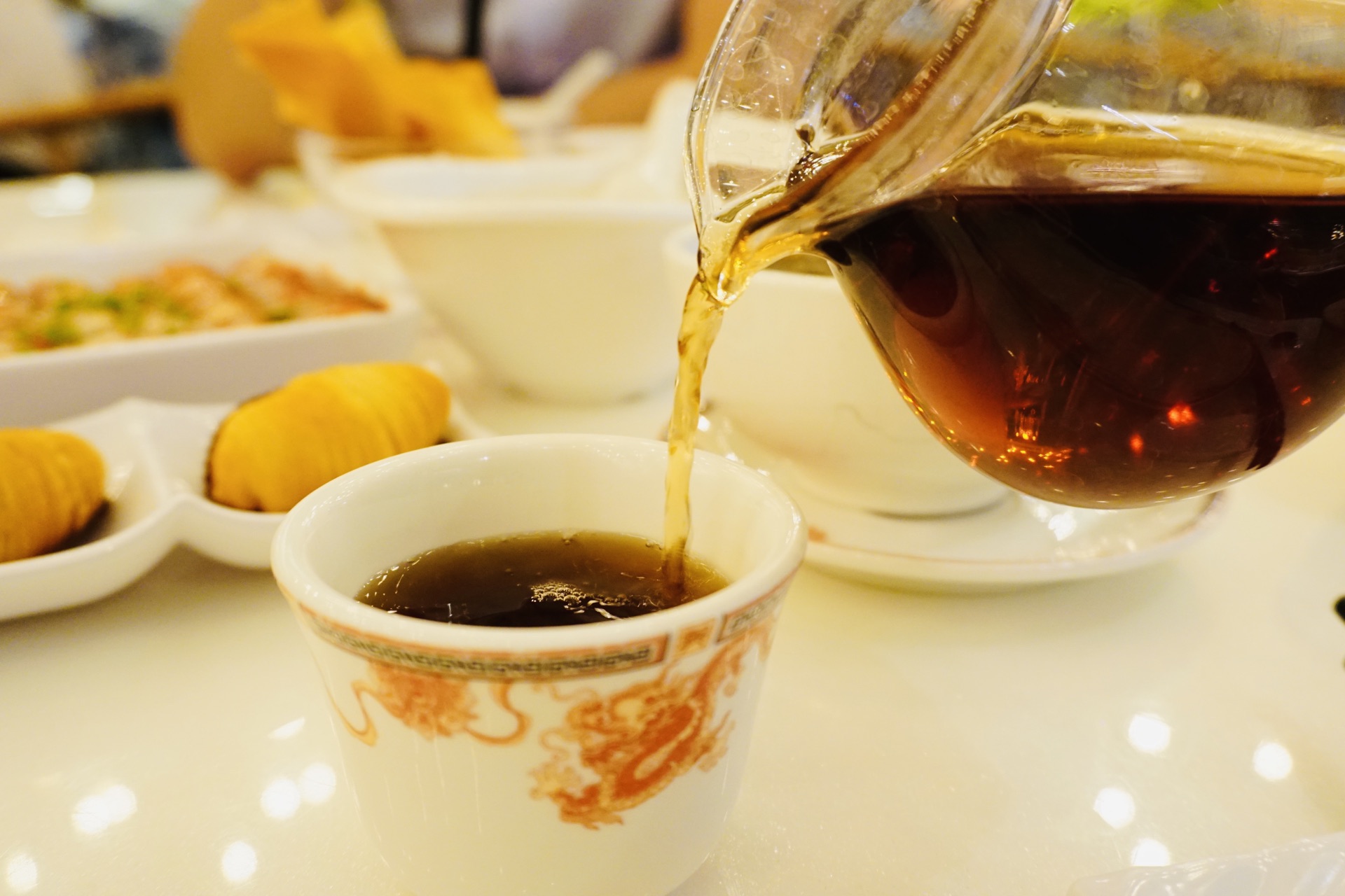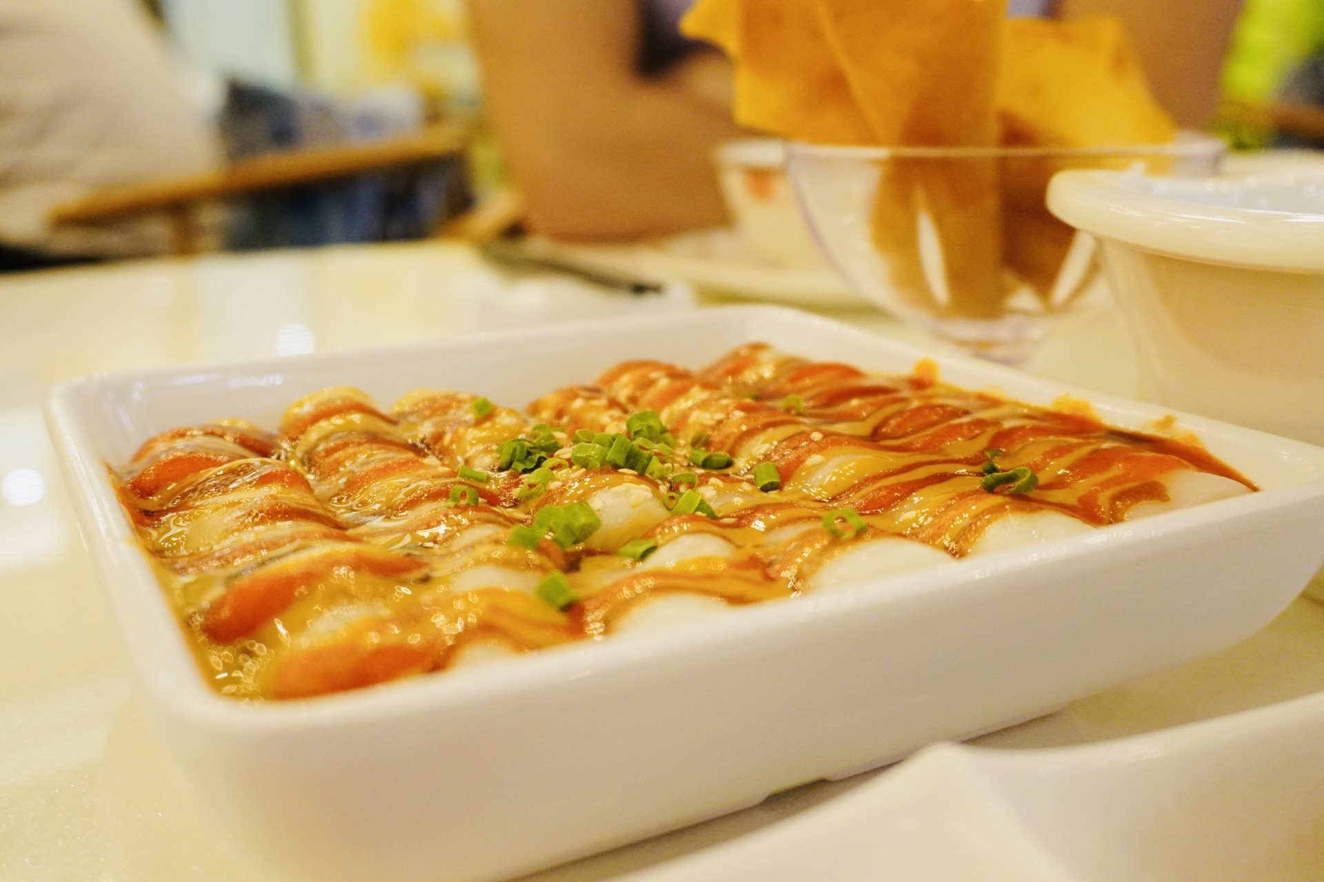 与汉街同龄的餐厅在汉街上真的不多了,稻香算是坚持了这么多年自然红火的一家,每次都是如吃茶吃点心,玉女十八春入口芳香,回甘无穷,配上各类精致的小点可谓相得益彰。传统的虾饺、肠粉、叉烧包、榴莲酥、粥点自然绝不让人失望,作为新派港式小点的红肠粉也是每回必点,时有创新的独家点心如锦绣云吞,芥香春卷等油炸类点心也值得称赞。