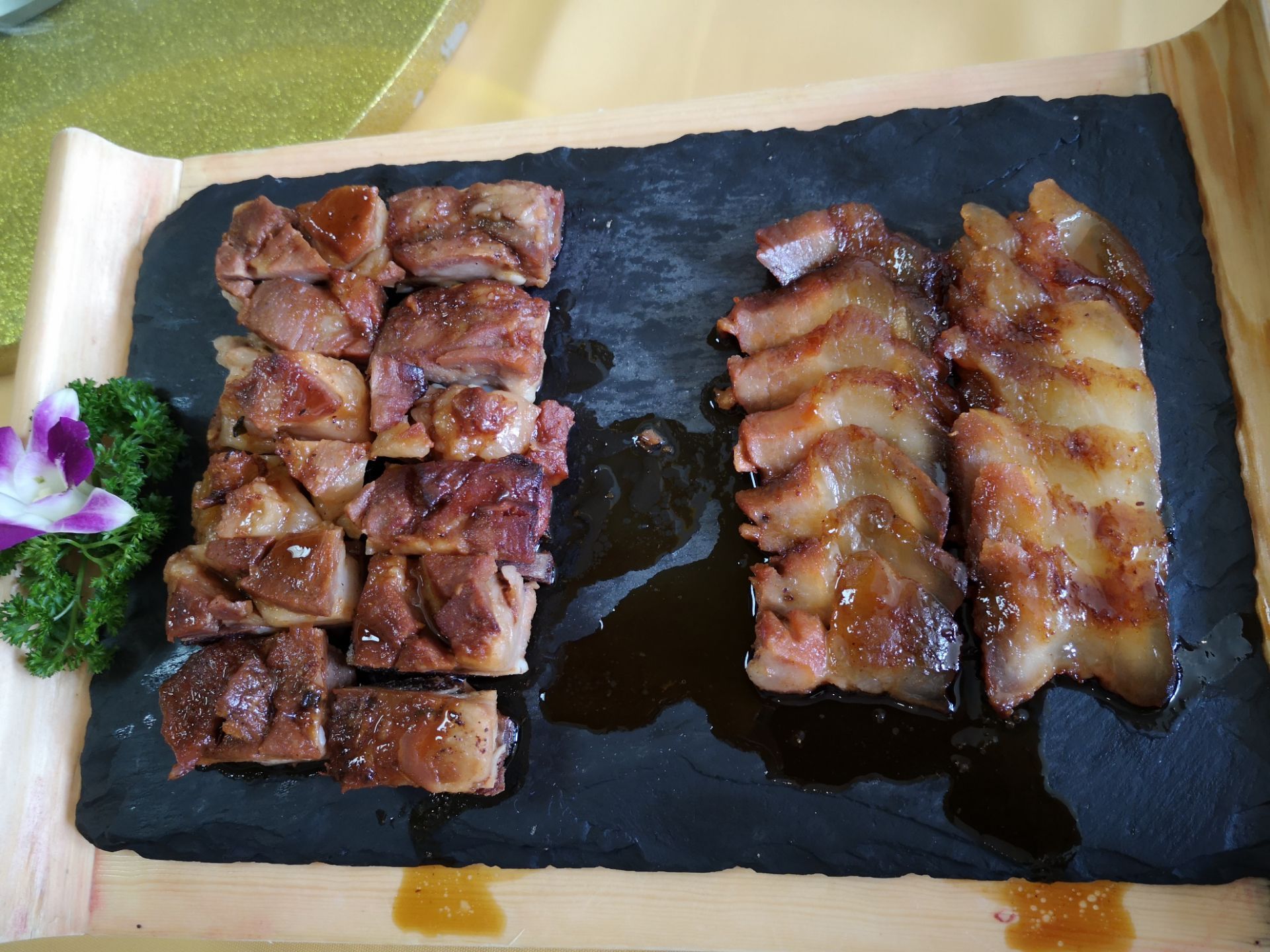 当地相当知名的一个烧烤的店铺,主要的话这边是做铜板的烧烤,所以在这里的标志上面就能够看出来,这种烤肉对于肉汁的封锁还是挺不错的,价钱方面也并不是特别的贵,食材很新鲜,相当多选择,在门口有一只小龙,小孩子挺喜欢的。