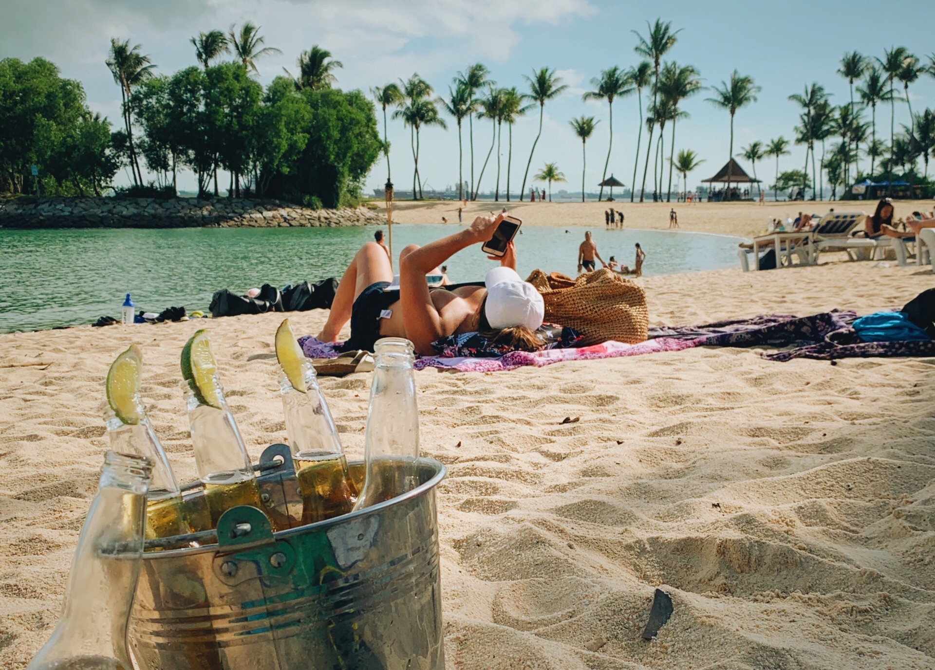 今天分享一个私藏的海滩酒吧,位于圣淘沙内的Tanjong Beach Club。圣淘沙虽然不大,但也分了不同的区域,而在每个区域内都有几家比较独特的酒吧,TBC就在Tanjong沙滩内,也是这个海滩上唯一的一家,所以一到周末,整个Tanjong沙滩都是前来度假休闲的人。TBC一直都是我非常喜欢的酒吧之一,早些年几乎一到周末就会来这里晒太阳。酒吧提供沙滩床和沙滩躺椅,沙滩床有最低消,平日和周末价格略有不同,点上一桶冰镇啤酒,躺在沙滩床上享受日光浴,完美的周末也不过如此。如果不愿晒太阳也可要求遮阳伞,或选择室内或吧台区的高脚桌。酒吧有自己的泳池,周围还有几个沙滩排球的场地,许多年轻人都会来这里打球放松,还有很多家庭会带小朋友来这里堆沙雕或者遛狗,因为紧靠大海,很多人也会选择直接蹦进海里游泳,真的是非常惬意了。