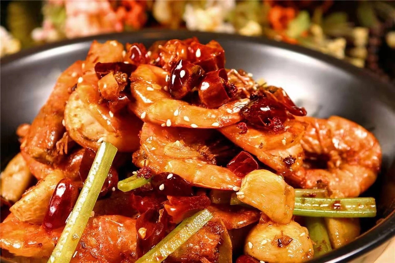 脆骨干锅虾 脆爽口感的排骨和鲜虾爆炒入味!脆排骨,麻辣虾一锅端!花椒辣椒香味随着热气直窜鼻尖