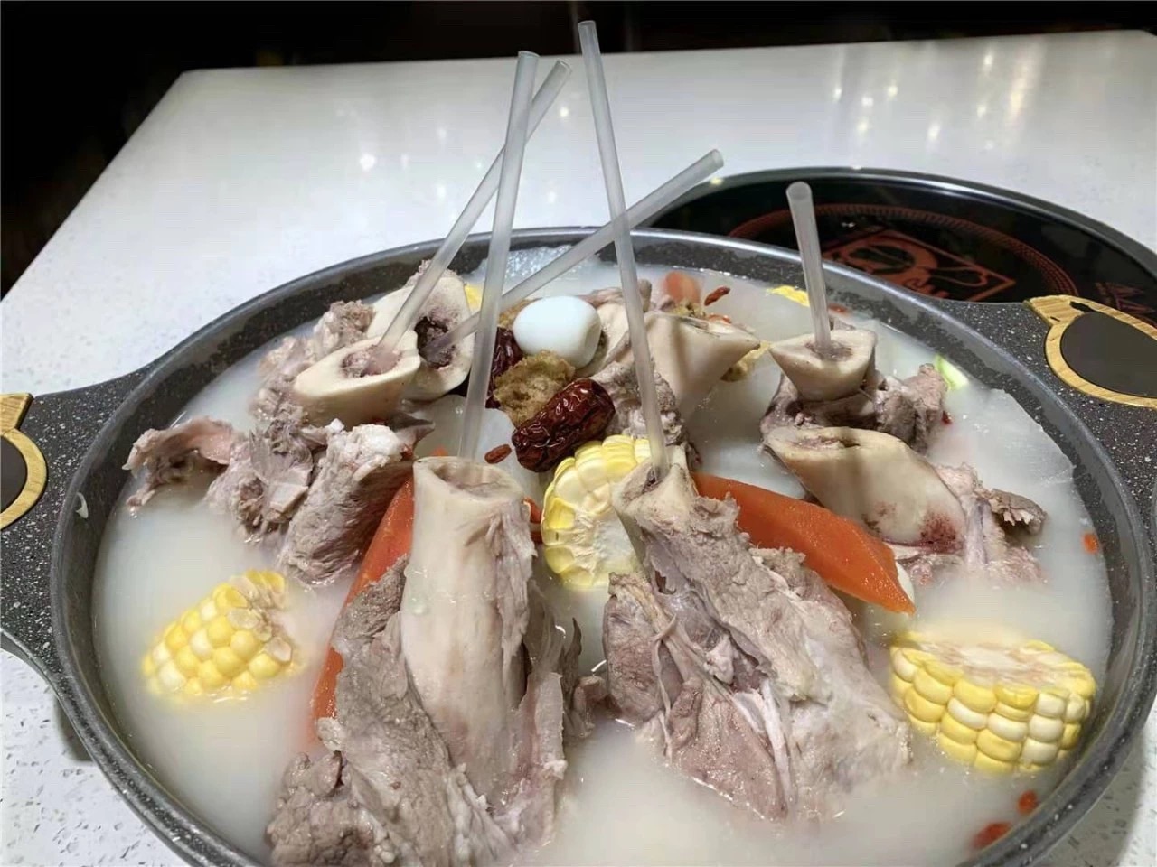 在大成都这个吃货之都 无人不知无人不晓的尚鲜美食 非一把骨莫属了! 每根骨头尺寸大的惊人 粉嫩的肉肉布满骨头 轻轻一拨骨肉分开 肉香肆溢,满口鲜滑! 粗粮一把骨 棒子骨原汁原味加入香甜的玉米棒子、清爽的冬瓜片、大枣、枸杞等配料,一锅熬制骨头里面的精华部分全部释放在雪白的汤头里!鲜汤入口粗粮的清爽和骨头的鲜香融合让汤料更显鲜美馥郁!