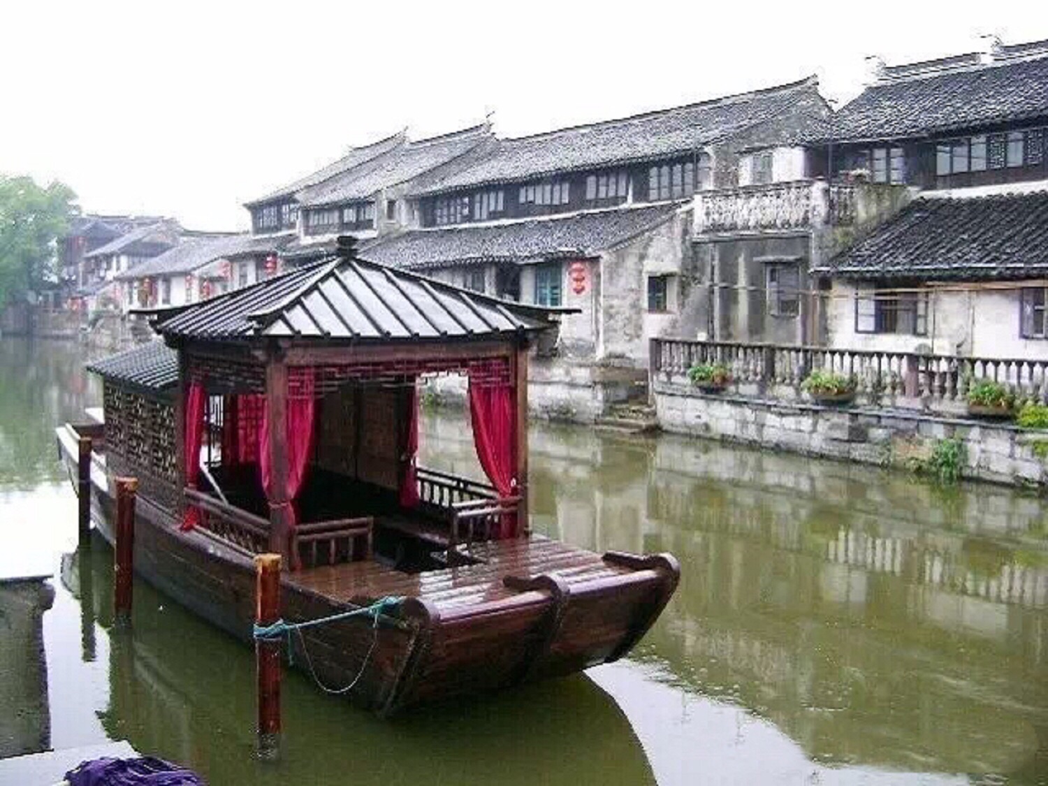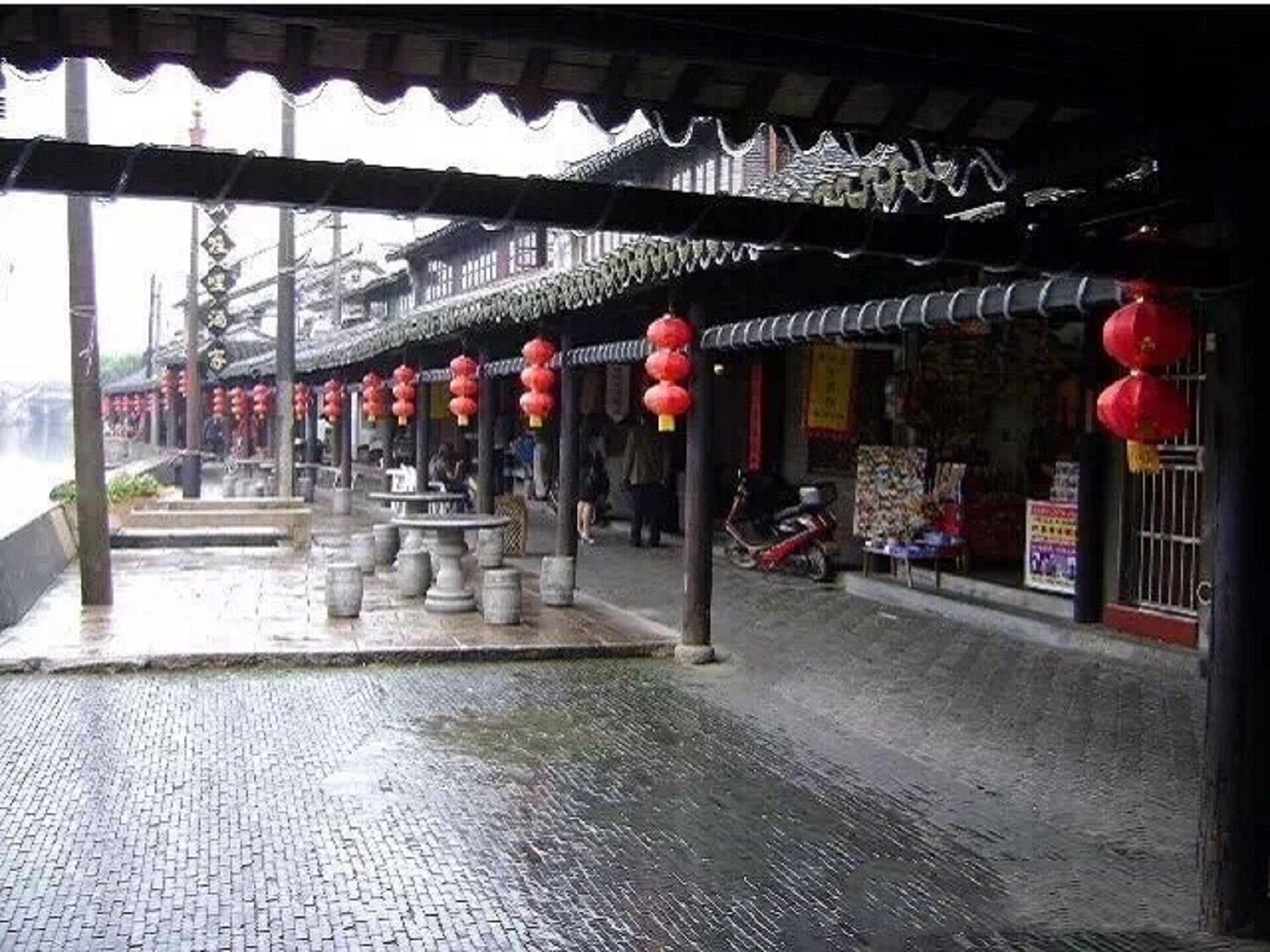 穿过枫溪长廊到一个酒家吃午饭穿过枫溪长廊到一个酒家吃午饭。 枫溪长廊很有水乡特色,各家都卖粽子和一些小饰品,家家都把船停在水边,家家都是自己现场制作粽子。红色的灯笼挂满了枫溪长廊,连停在水边的小船也挂着灯笼,这就是家家户户平时的出行工具。