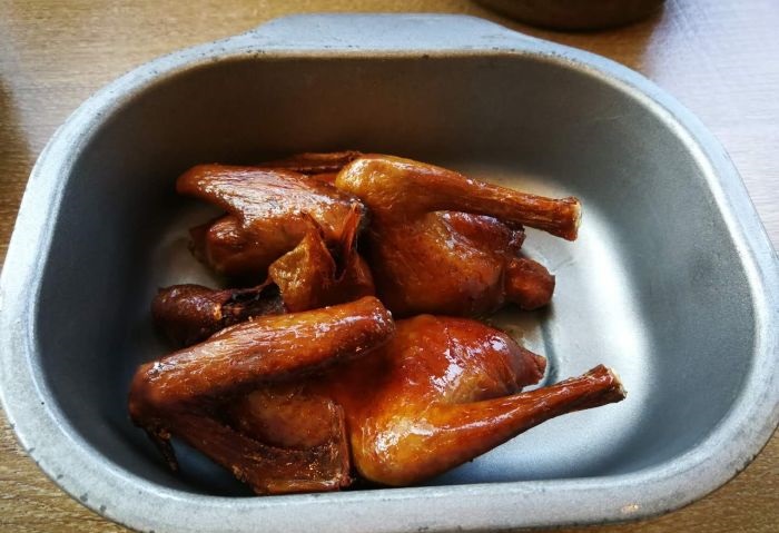 189中午都是附近的白领,都坐满了。虽然朋友觉得蜜汁叉烧肠很油,居然是我觉得最好吃的;乳鸽向来是必点,一如既往的喜欢;金牌榴莲酥朋友点的,下午要上班的人居然敢吃这个,可见味道不是太重;椰汁枣皇糕以及不记得菜名的各种是后来加的,也还行。