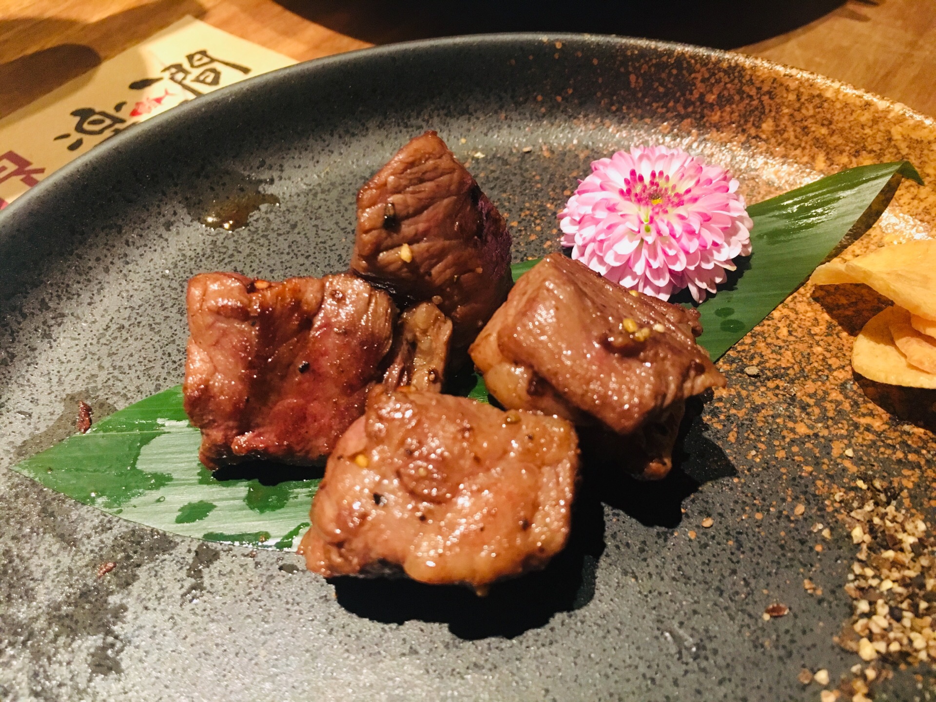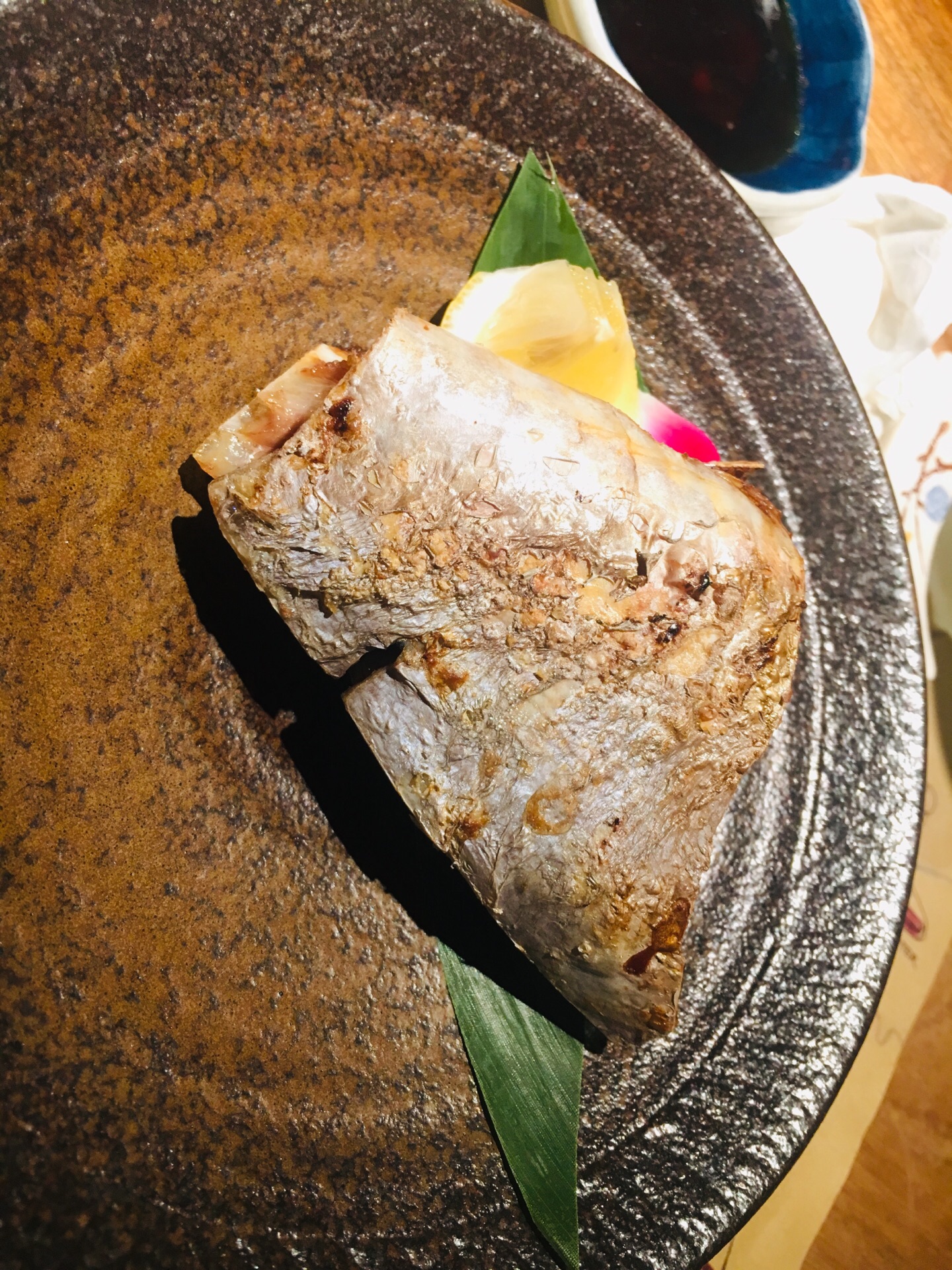 海参非常美容养颜 铁板澳洲M9和牛铁板煎,牛肉稍微有点过熟了 碗物盐烧蓝鳍金枪鱼脖子,煎的很脆...