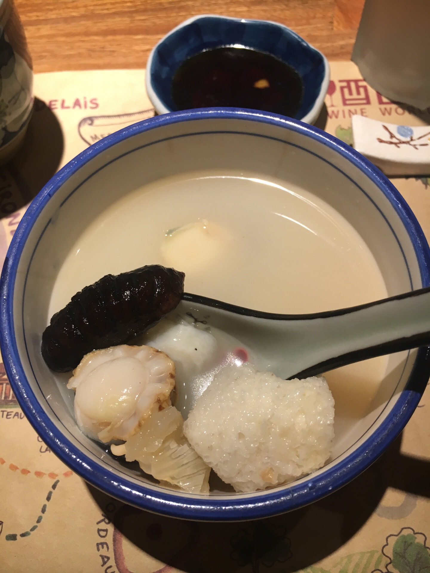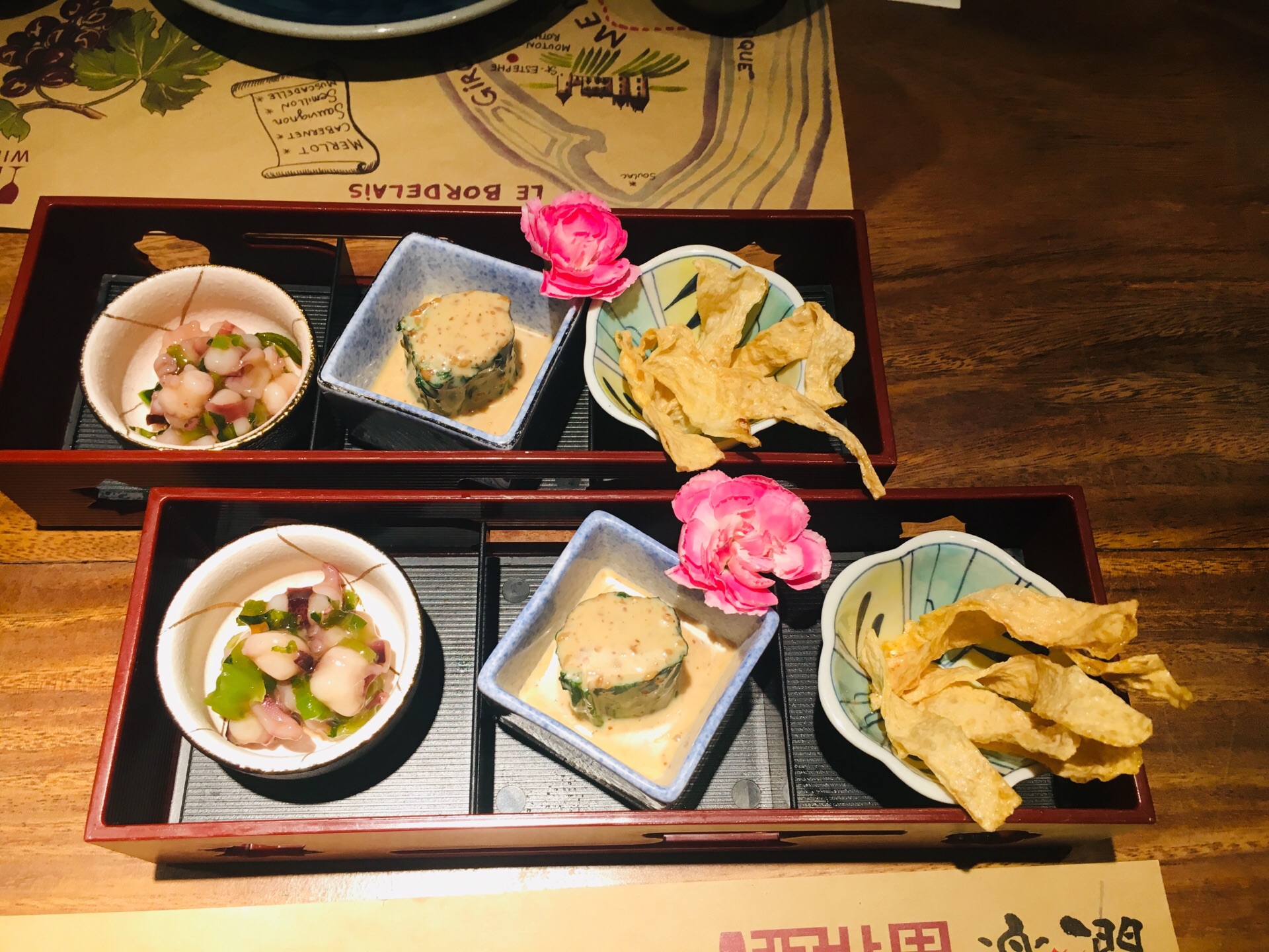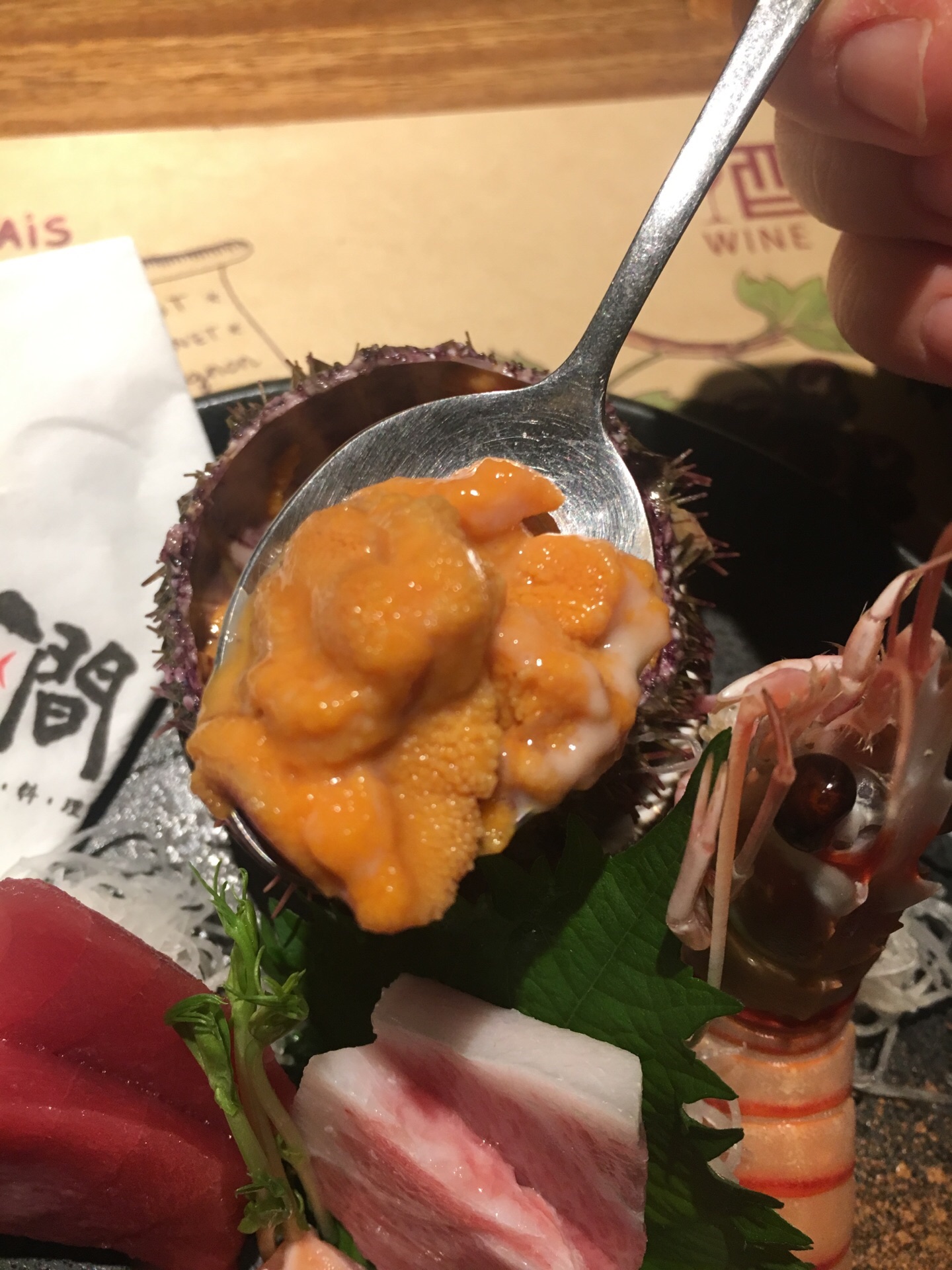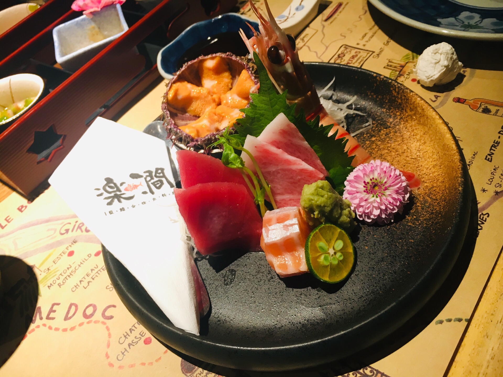 逼格很高,在生态城里面 前菜加拿大鳕鱼丝(炸的),胡麻菠菜(蘸沙拉酱),日本芥末章鱼,量少但是开胃 割物拼盘是最喜欢的一道菜,都是世界各地空运过来新鲜的食材 这里主打金枪鱼,金枪鱼背上的刺身以及金枪鱼鱼腩都挺好吃,三文鱼鱼腩肥而不腻 新西兰的鳌虾肉质鲜美,自带鲜甜的口感,海胆是活杀,很新鲜 吸物养生海鲜羹需要趁热喝,汤很浓郁,有鲍鱼,花胶,竹笙,鱼翅,海参非常美容养颜 铁板澳洲M9和牛铁板煎,牛肉稍微有点过熟了 碗物盐烧蓝鳍金枪鱼脖子,煎的很脆,肉质原汁原味,可以配点调味品 烧物澳洲青龙芝士烧,肉质鲜美且富有弹性,只是焗的时间掌握的很好 法国鹅肝中规中矩,配面包吃也有点腻,没有入口即化 时蔬铁板芦笋,抗癌蔬菜,铁板之后比起水煮更容易入口 鸡软骨饺子,很好吃,没想到鸡软骨和饺子还能组合到一起 没有甜品改上了果汁,鲜榨的味道也不错 整体体验感觉还是很不错的,环境服务都不错,食材也很讲究 定期还有开鱼活动,挺有意思