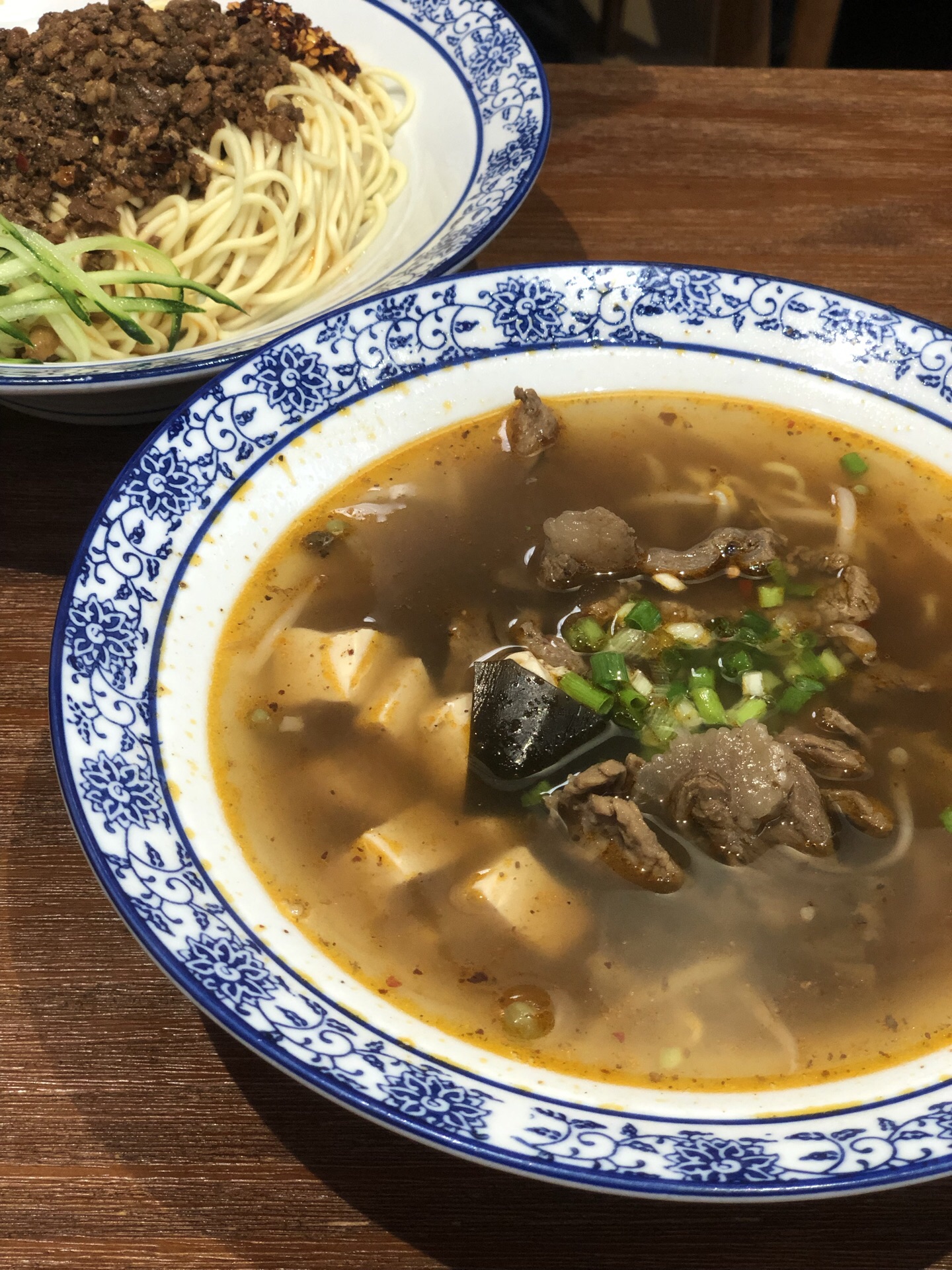 出餐还蛮快的~ 干拌面不错吃,辣度合适,吃起来贼有胃口~牛肉汤比较一般,里面加了豆腐和豆芽,嗯...