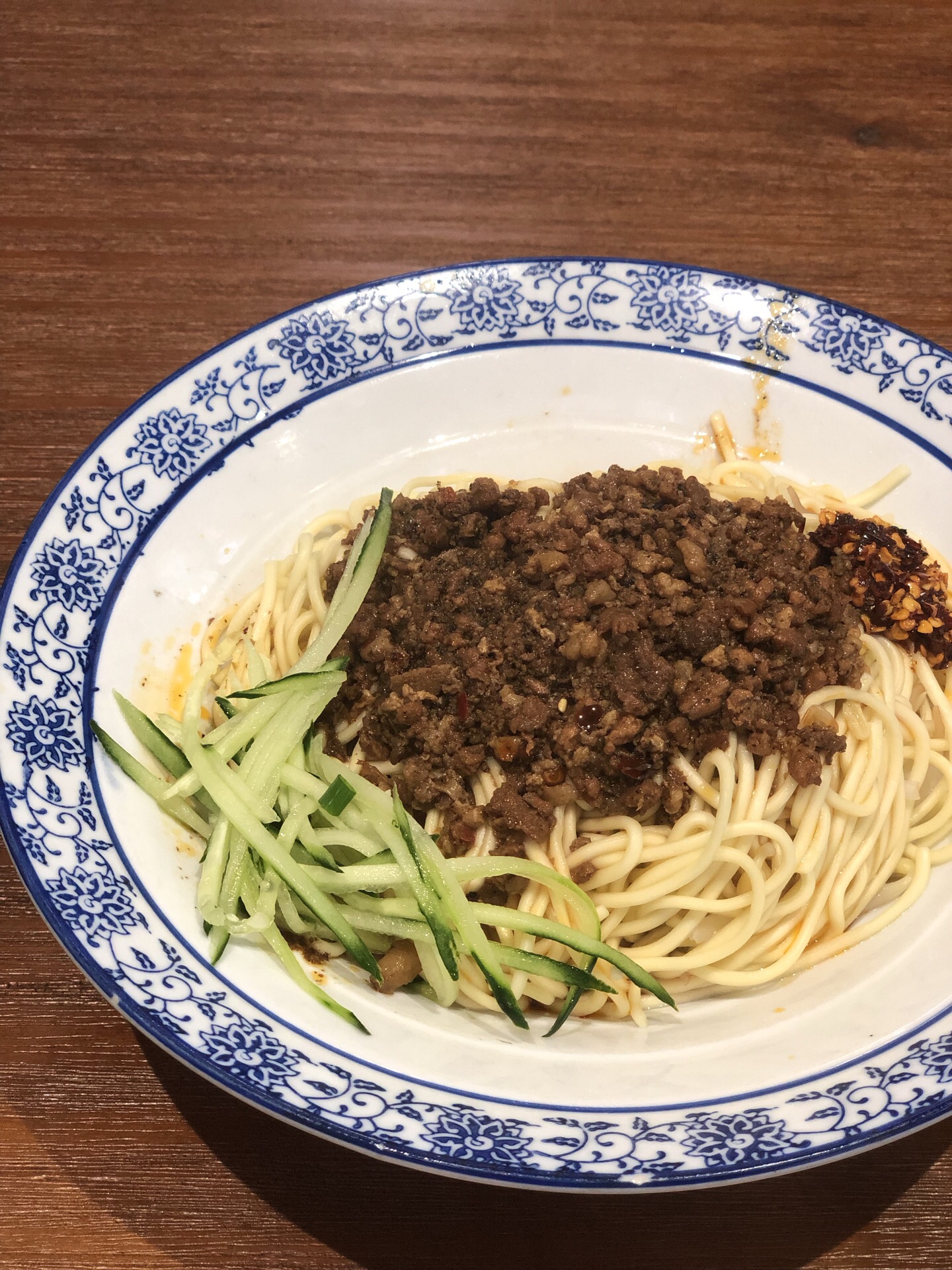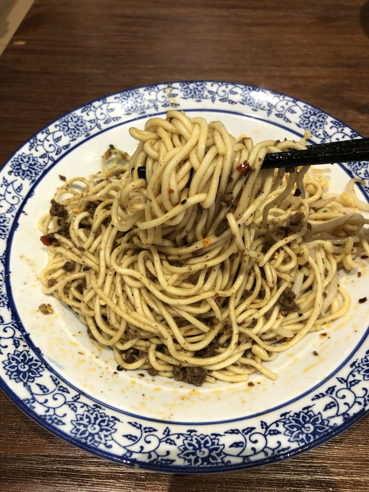 附近找个面馆解决一下晚餐~一家子开的面馆,招呼蛮热情,空调风强劲~ 当时没客人,出餐还蛮快的~ 干拌面不错吃,辣度合适,吃起来贼有胃口~牛肉汤比较一般,里面加了豆腐和豆芽,(嗯面条里也加了豆芽也)牛肉不太好吃~ 是还会想来吃面的小馆子~