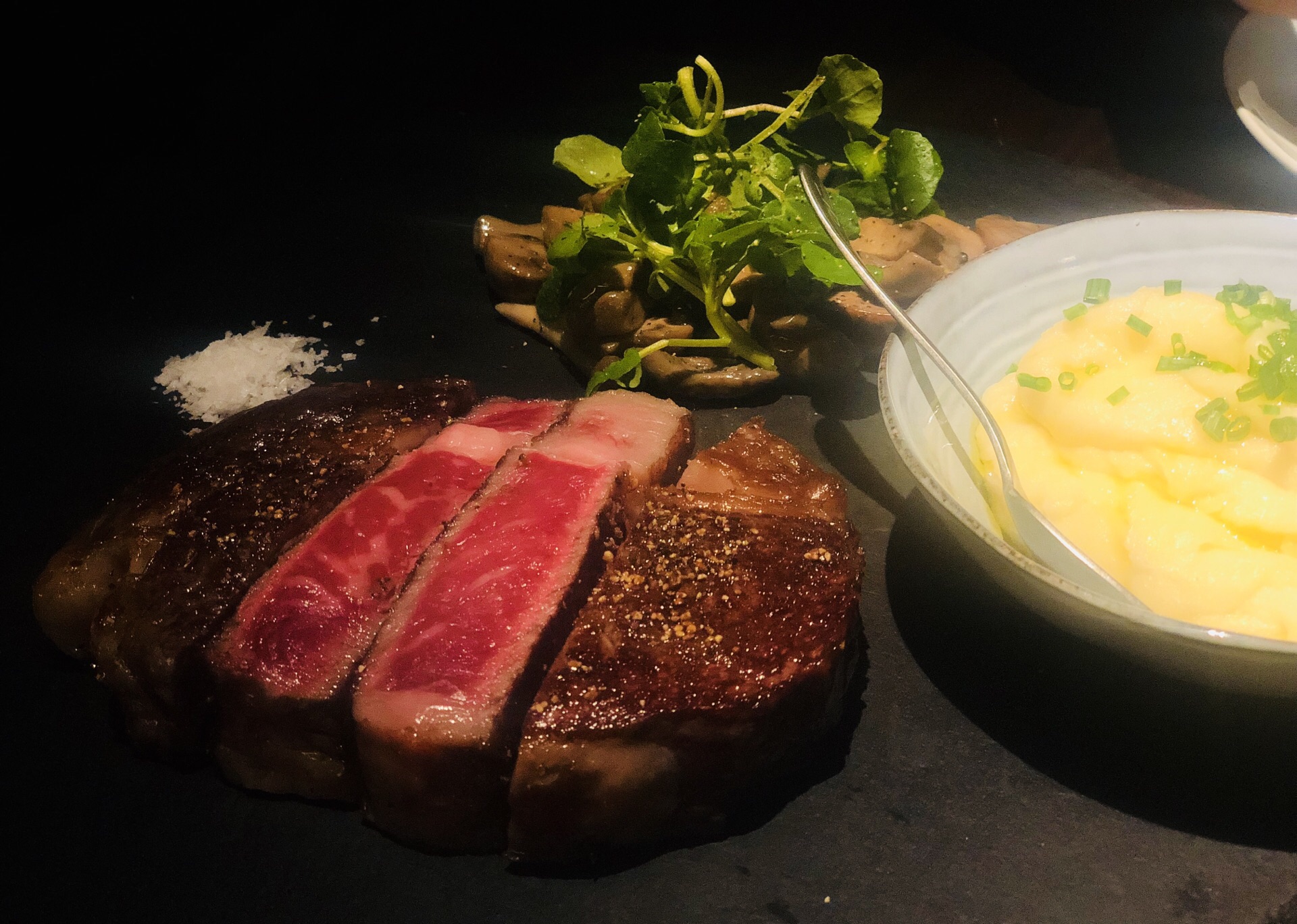 本来想来挑战战斧,量实在是大~ 换成858米的澳洲和牛m5+花纹肉眼牛排500g~ 金枪鱼塔塔满满一盘,食材可~塔塔调的也ok~面包片下面有蘑菇~蟹肉饼是蛮喜欢的一道菜~牛排足够双人share了~搭配点的土豆泥一起送上~3分熟~整体尚可~ 服务略有跟不上,点了一杯tommy玛格丽特还被漏单了~微微小薰~